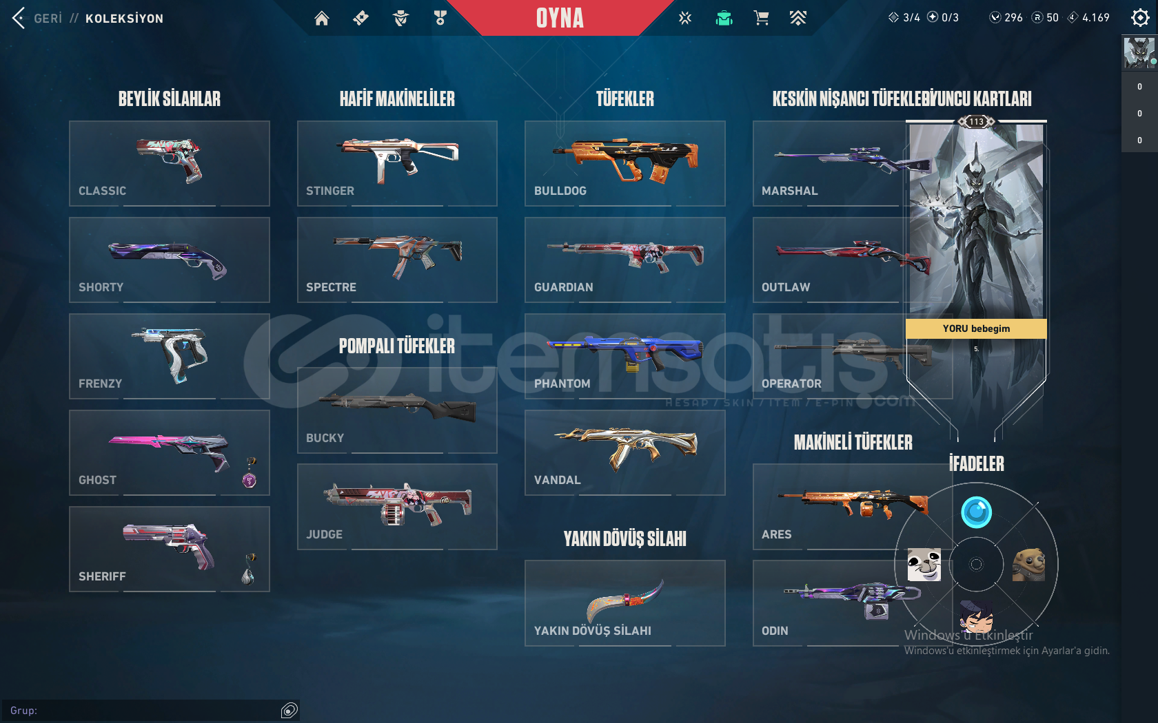 hesapta bir çok battlepass skini kartları ve uğurlukları bulunmaktadır detay için dm