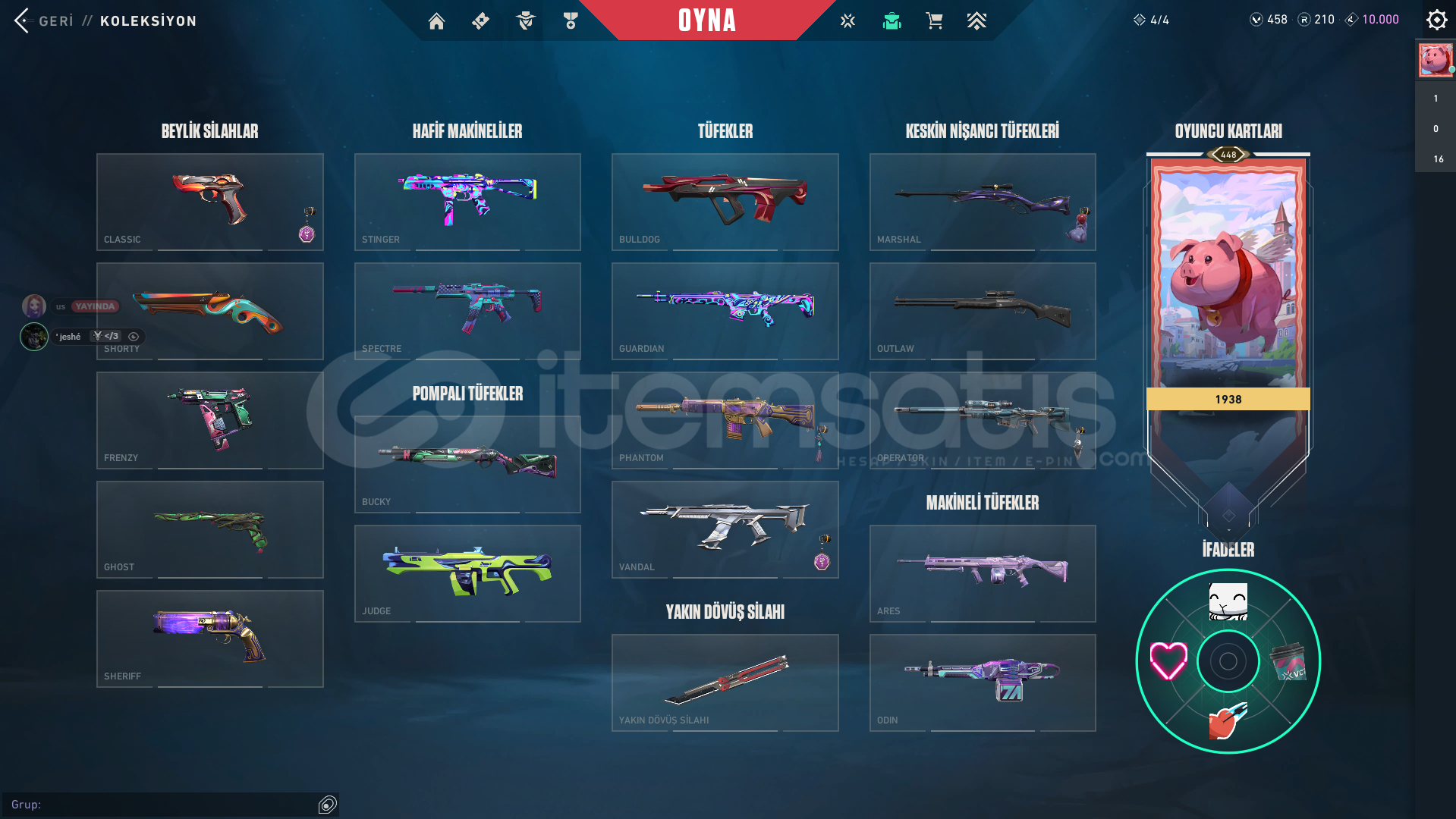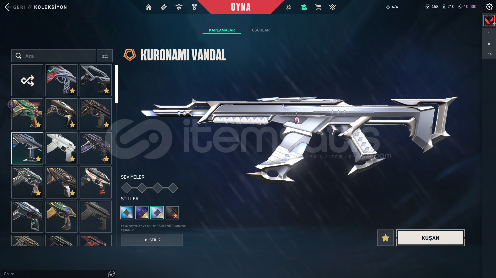 Pazarlık Vardır abartı olmayacak şekildeHesap rankı:    PLATİN 1 28KPHesap içinde 458 VP bulunuyor10.000 kingdom kredisi!!SKİNLER!!BIÇAKRGX KelebekGazap (Battle Pass)Kıvrım Bıçağı (Battle Pass)Kum Fırtınası Hançer (Battle Pass)VANDALIşık Muhafızı VandalCyrax VandalKuronami VandalEjderin Buyruğu VandalZamanın Ötesi VandalNeptün VandalYa...