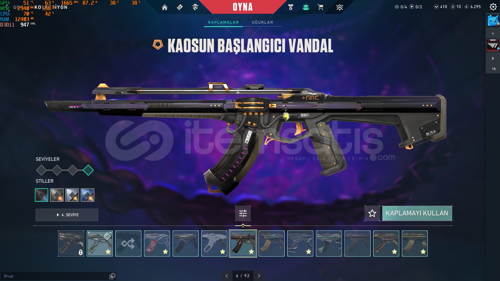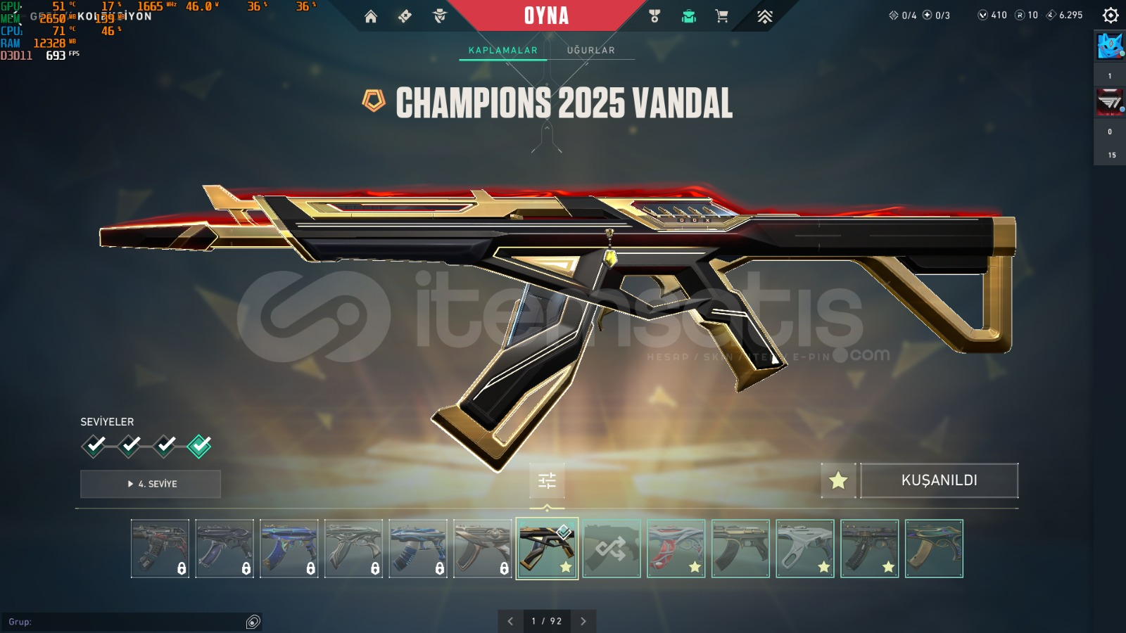 İÇİNDE 400 VP+10 RP VARİÇİNDEKİ VANDAL SKINLERIKAOS,KURONAMI,CAMPIONS2025 VANDAL,YILDIZ BELASI VANDAL,ULUPENCE VANDAL,GAİA VANDAL,IYON VANDALSERIF-SERI TETIKGHOST-ULUPENCEYITIK CLASICC,ASIL SPECTRE,YAGMACI GUARDIAN,spetrum phantom,yıtık marshal,res operator.ve 3 tanede battle pass var bıccak ıse ozel harekat kelebek