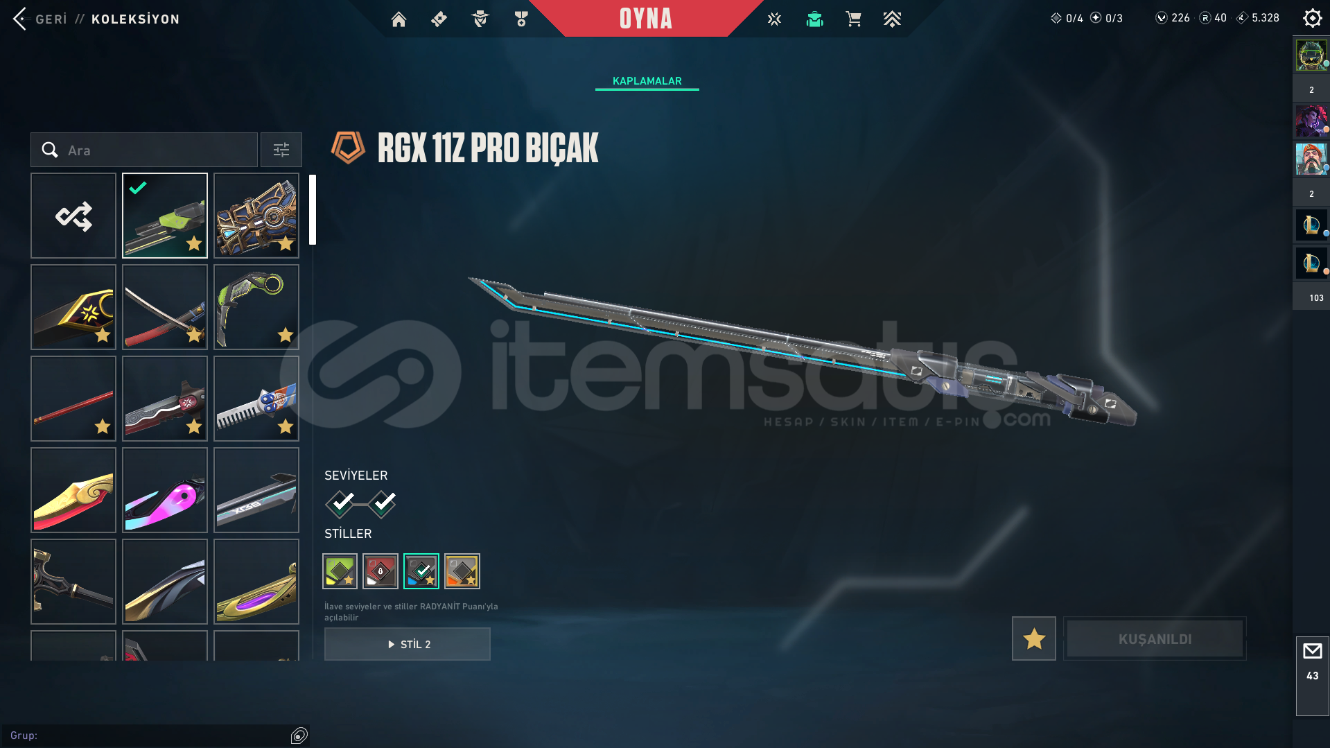 BIÇAKLAR-RGX 11Z PRO KATANA-RGX 11Z PRO KARAMBİT-ARCANE ELDİVEN-CHAMPİONS 2023-ODİ KATANA-CESUR YÜREK-VCT LOCK//IN-YORUNUN JANTİ KELEBEĞİ-ALAZ YELPAZE