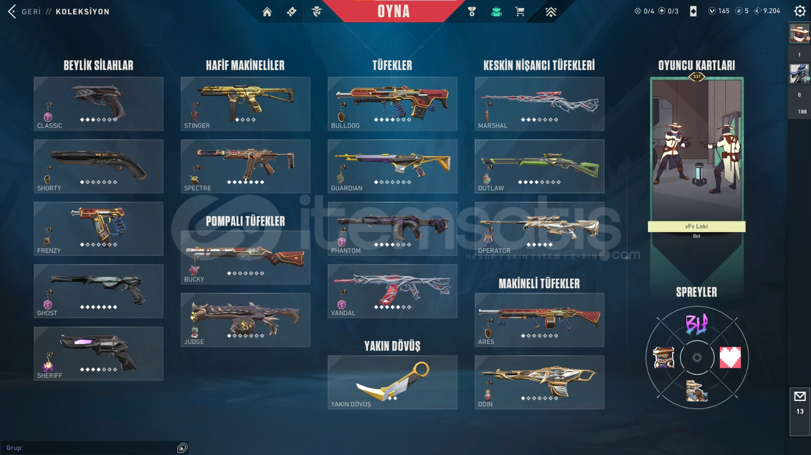 Dolu Dolu Bir Hesaptır Hesabın İçindekileri Aşağıya Bırakıyorum İsteyene Video Atarım.Hatıralar Geçidi Anomali Seti Zifiri Seti Champions 2024 Seti Oni 2 Seti RGX 2.0 Seti Arcane seti ve Onlarca Battle Pas skini mevcuttur.Hesaba Toplamda 33292 TL Yatırışmıştır.Klasik:Asil Klasik, Delipop Klasik Zifiri Klasik + 8 Klasik daha Shorty:Kaos Shorty + 4 Shorty skini daha Frenzy:Oni Frenzey +9 FrenzyG...