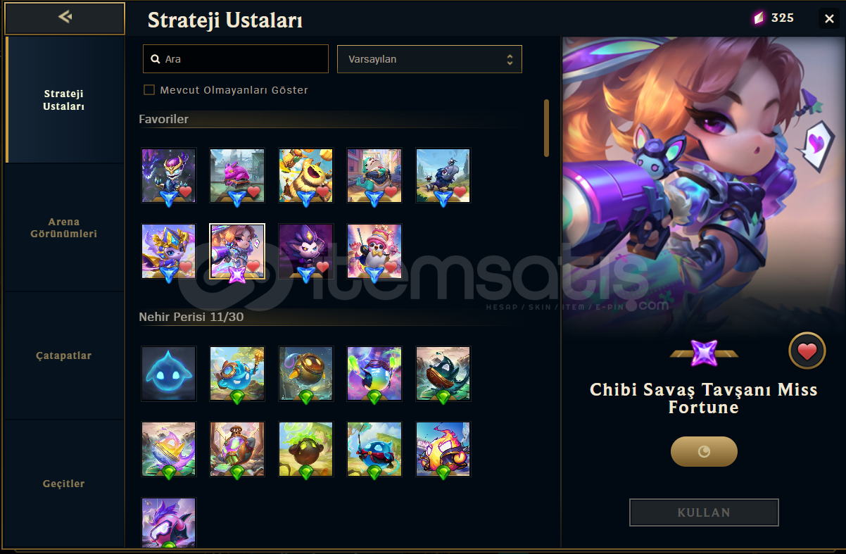 • 50'den fazla strateji ustası var, ben Chibi Savaş Tavşanı Miss Fortune kullanıyorum.
