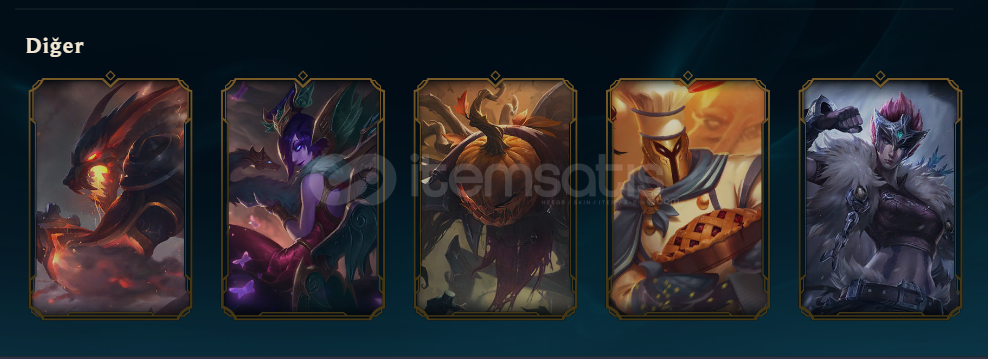 • Diğer : Ateşdiş Warwick, Ay İfriti Morgana, Balkabağı Fiddlesticks, Fırıncı Pantheon, Yaban İzcisi Quinn