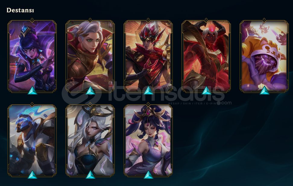 • Destansı : 2020 Dünya Şampiyonası Leblanc, Kalp Kıran VI, Mistik Rakan, Mistik Xerath, Miyavkai, Pulsefire Pantheon, Şafağın Kanatları Morgana, Yücelik Yolu Sona