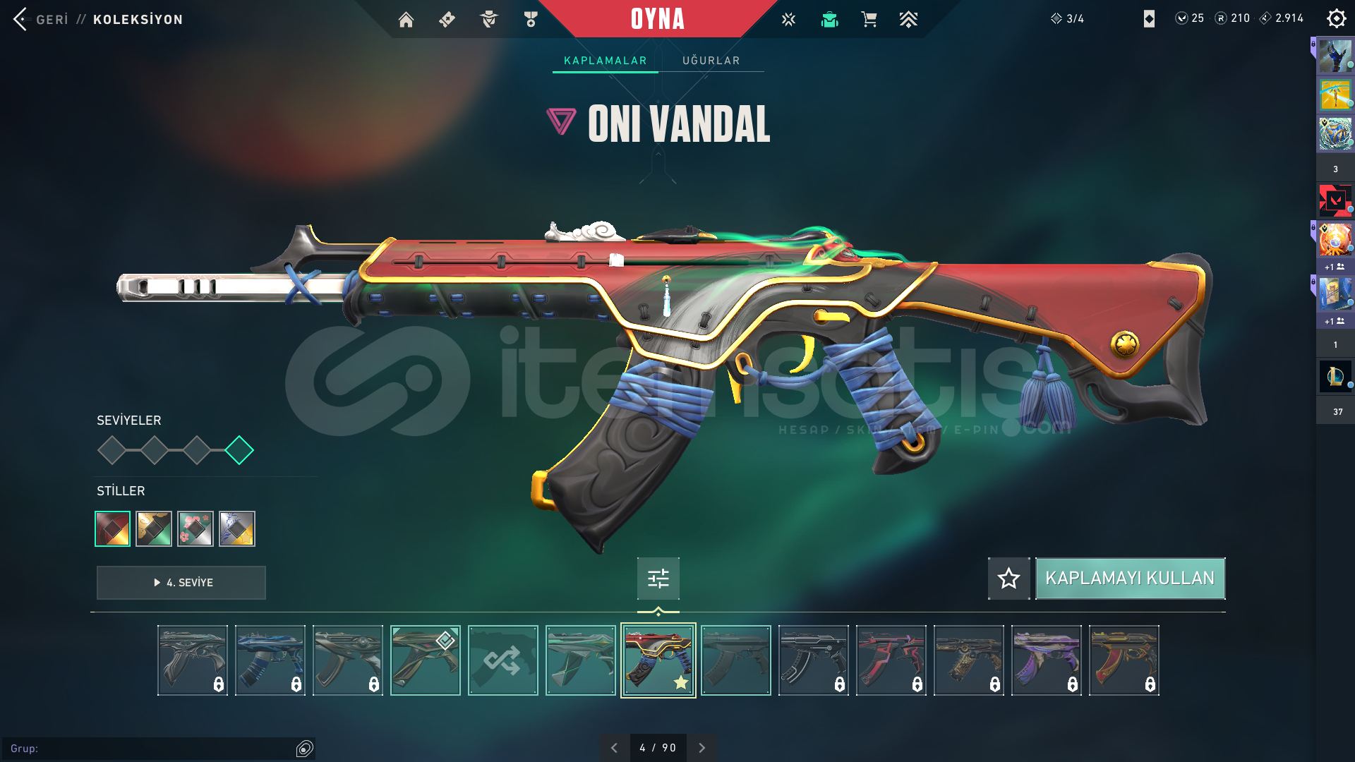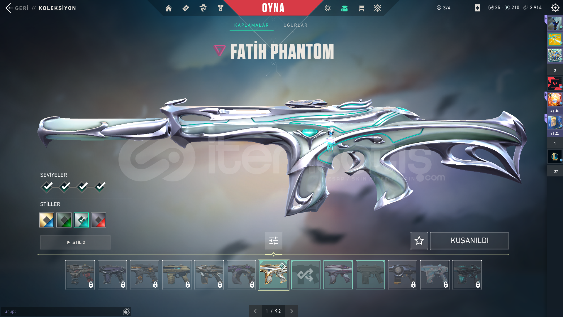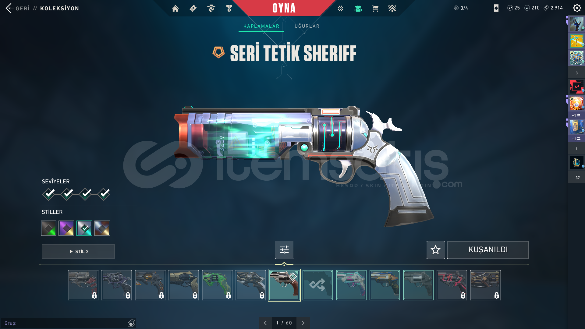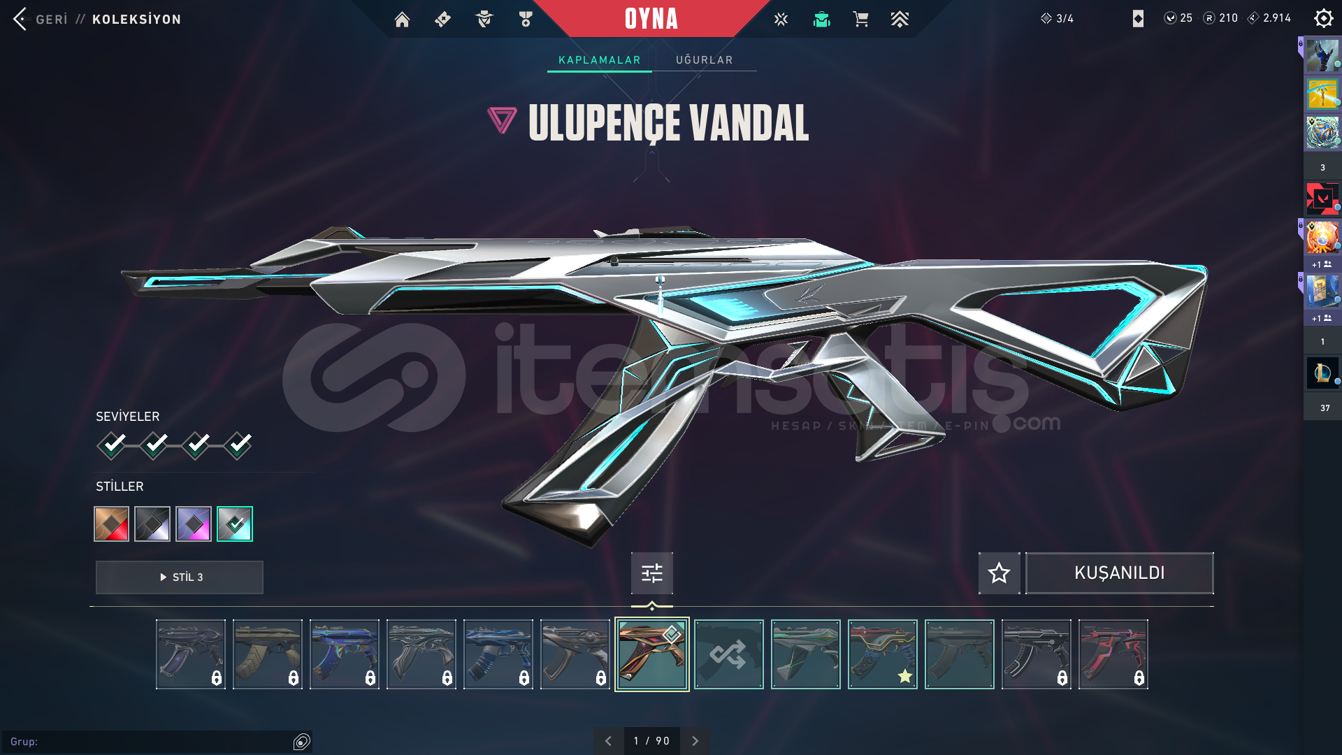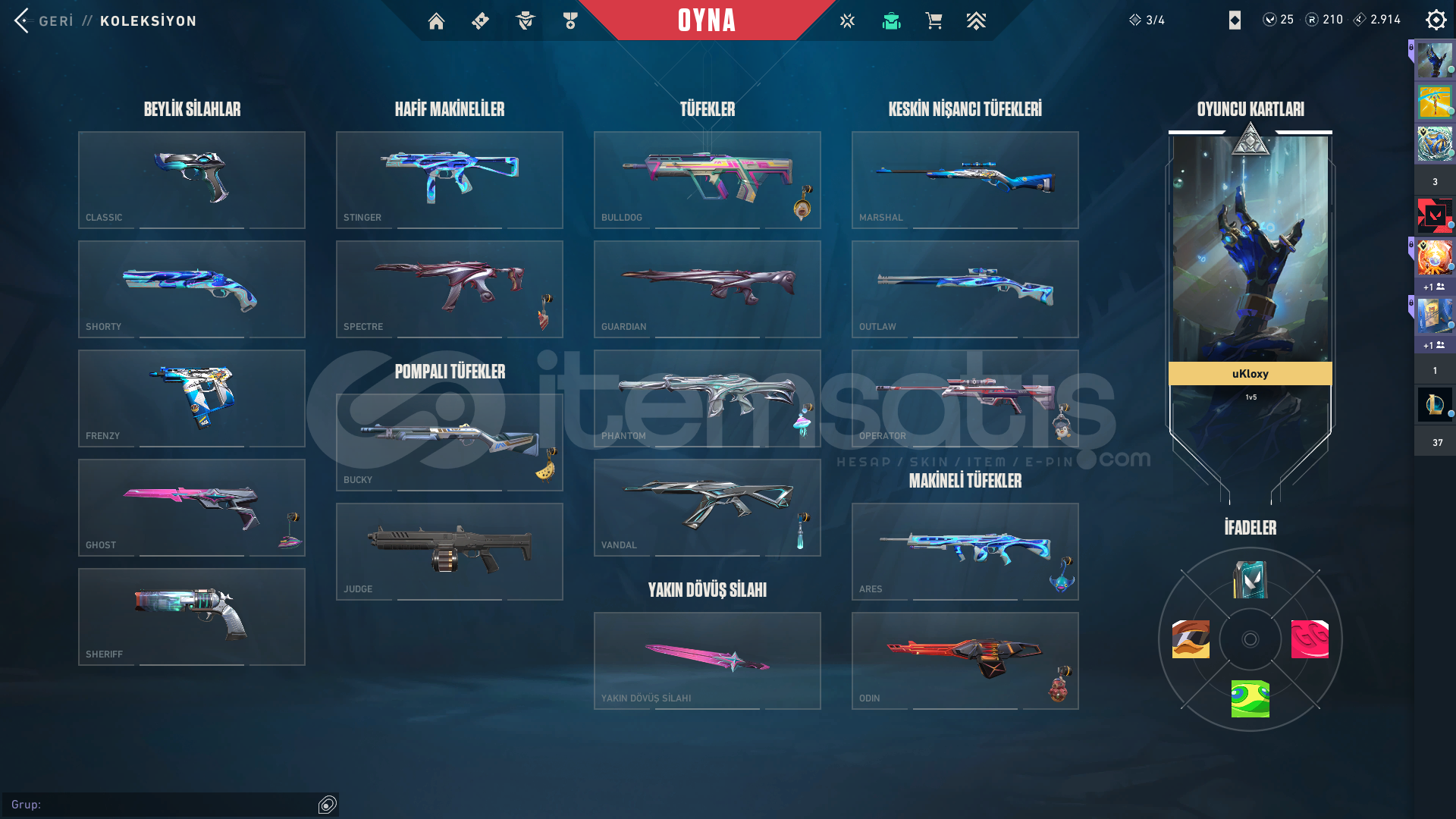 hesapın tek ve ilk sahibiyim hesabımda iki defa battle pass acılmıstırUlu pençe vandalOni vandalFatih phantomSeri tetik sherifİki tane bıçak vartoplamda 34 skin vardırTR SUNUCUSU