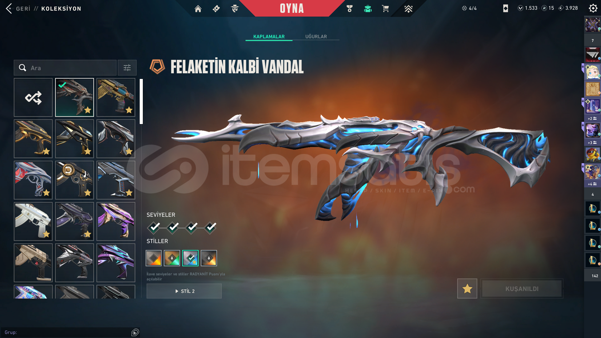 10 vandal yağmacı koken neptun felaket evrım champions 25 arcane kuronomi gaia cesur yürek3 phantom neptün champions 24 özel harekat2 şerif kuronomi seri tetik2 op iyon rgx1 spectra sherpunk3 bıc yağmacı champ özel harekat1 rgxx autlaw cesur yürek ares asil buck sır ciceği judgedelipop clasıc secu yürek ghost5 batılpas dia 1 205 lvl