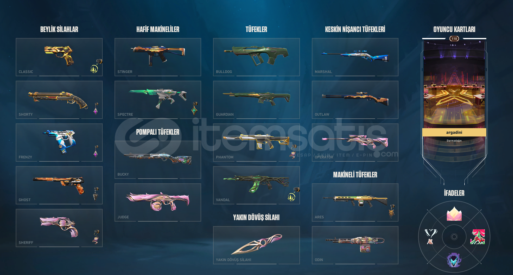 Sır çiçeği seti ve daha bi sürü skiini olan hesaptır ciddi alıcılar hangi skinlerin olduğunu sorabilir