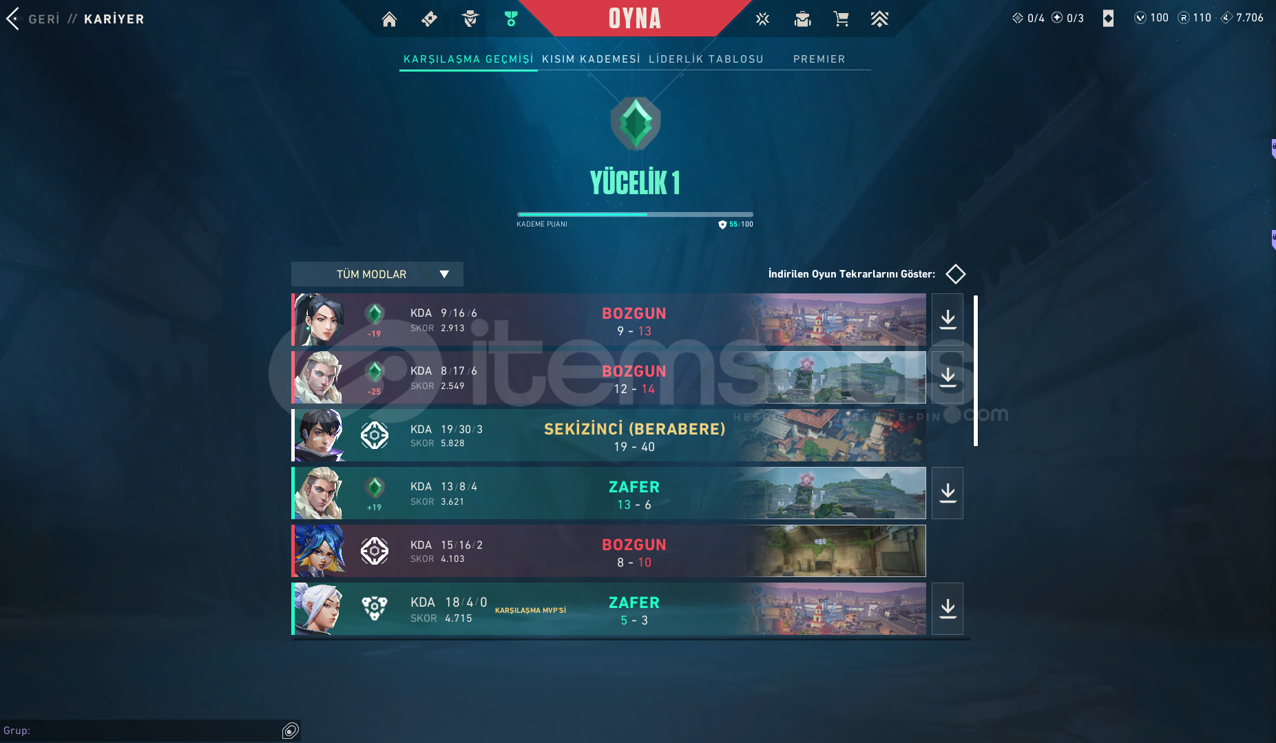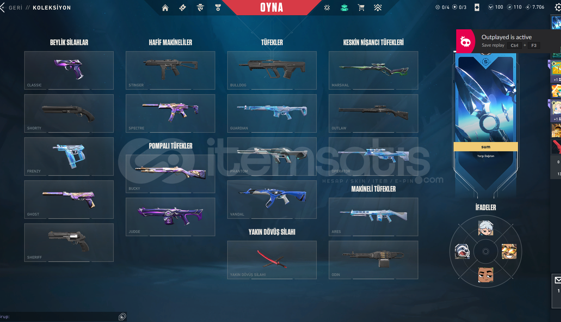Toplam 11875 Vp yatırıldı.+Hesap bu sezon Yuce 2 İçindekiler:EX.O KatanaBolt PhantomIyon VandalBattlepass Tamamlandı.