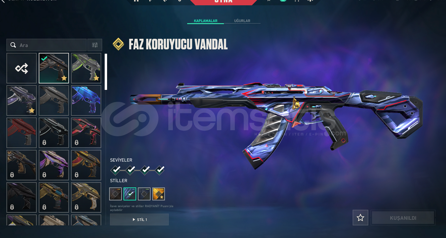 skinler: fatih ghost-yağmacı sheriff-anomali phantom-rgx vandal-faz koruyucu vandal-yağmacı vandal-rgx kelebek-özel harekat kelebek savaş bileti skinleri vs.