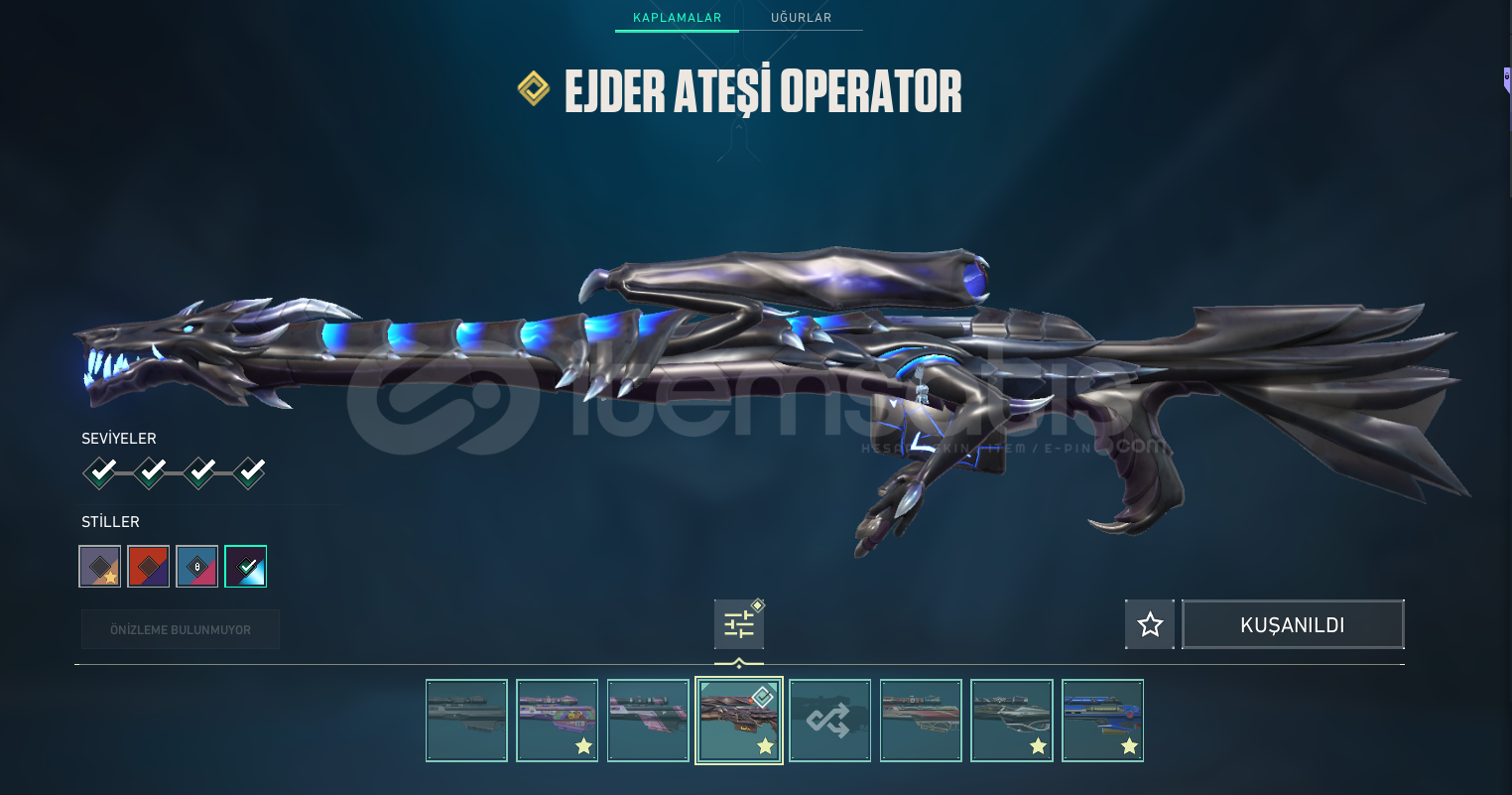Spectrum Classıc Seri Tetik Marshal Anomali Spectre Asil Spectre Seri Tetik Phantom Ejder Ateşi Operator Işık Muhafızları Operator Radıant Entertaınment System Operator Sihirpunk Ghost Işık Muhafızları Vandal Gaia'nın İntikamı Vandal EX.O Vandal Cesur Yürek Vandal Asil Vandal Işık Muhafızları Ares Seri Tetik Odin Işık Muhafızları Sherıff Seri Tetik Sherıff Evrim Asas&...