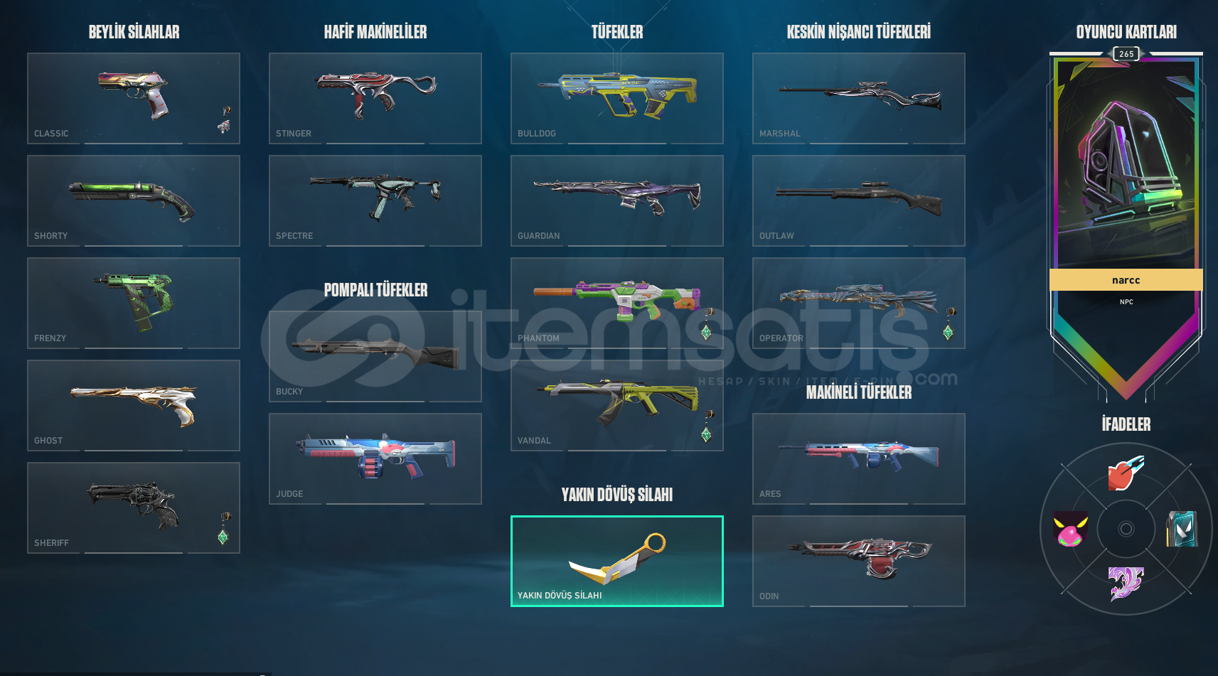 Hesap full dolu bir hesaptır uzun süredir oynamıyorum yücelik 3 rankına kadar yükseltip oyunu bıraktım. Hesaptaki skinler aşağıdadır.