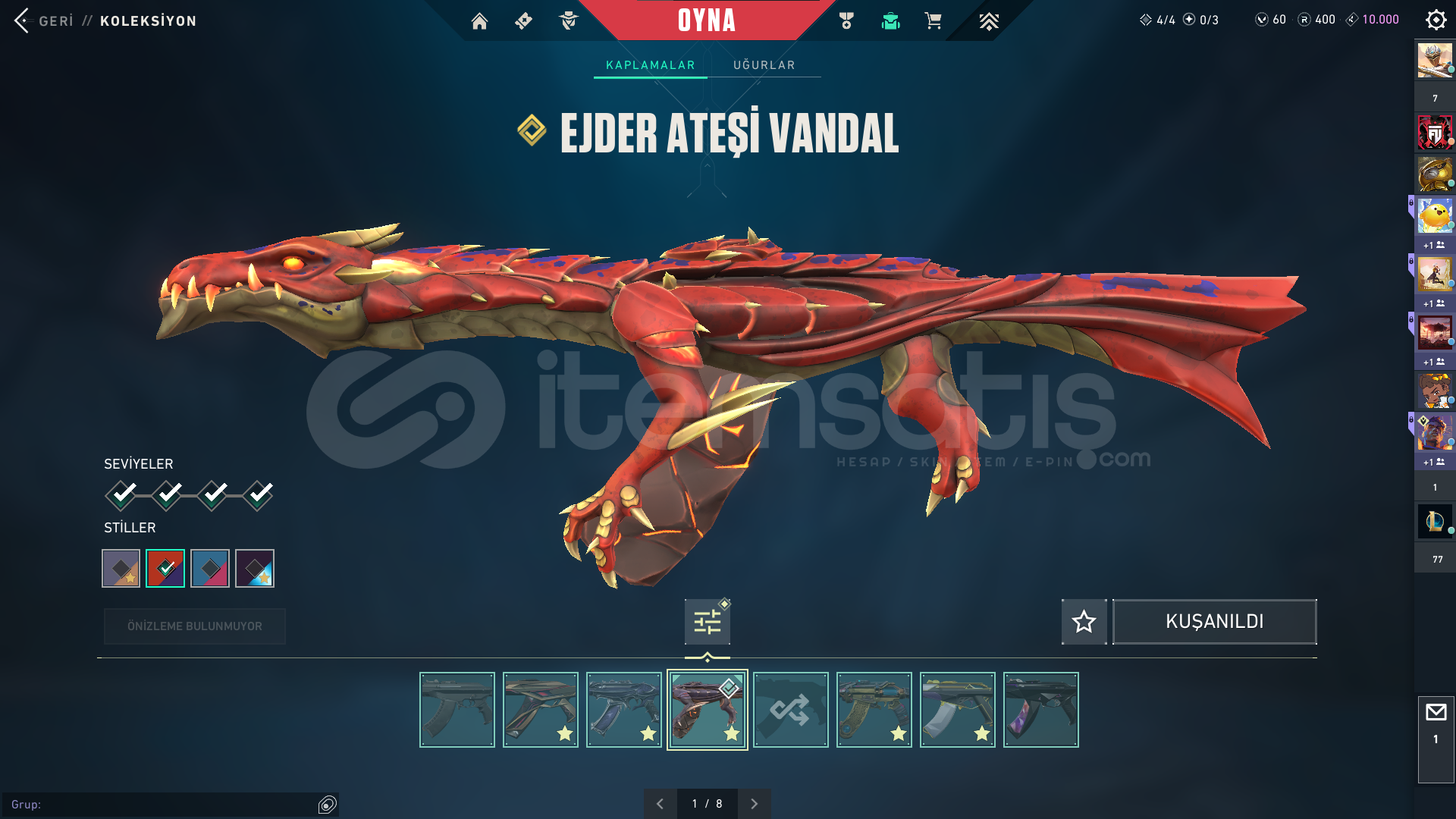 Karaborsa KelebekAsil BaltaAsil VandalEjder VandalUlupençe VandalArcane VandalYağmacı VandalChampıons 2024 PhantomYağmacı SpectreSihirpunk OperatorAnomali SherifAnomali GhostVCT X EDG ClassicKalan Battal pass Ktac var