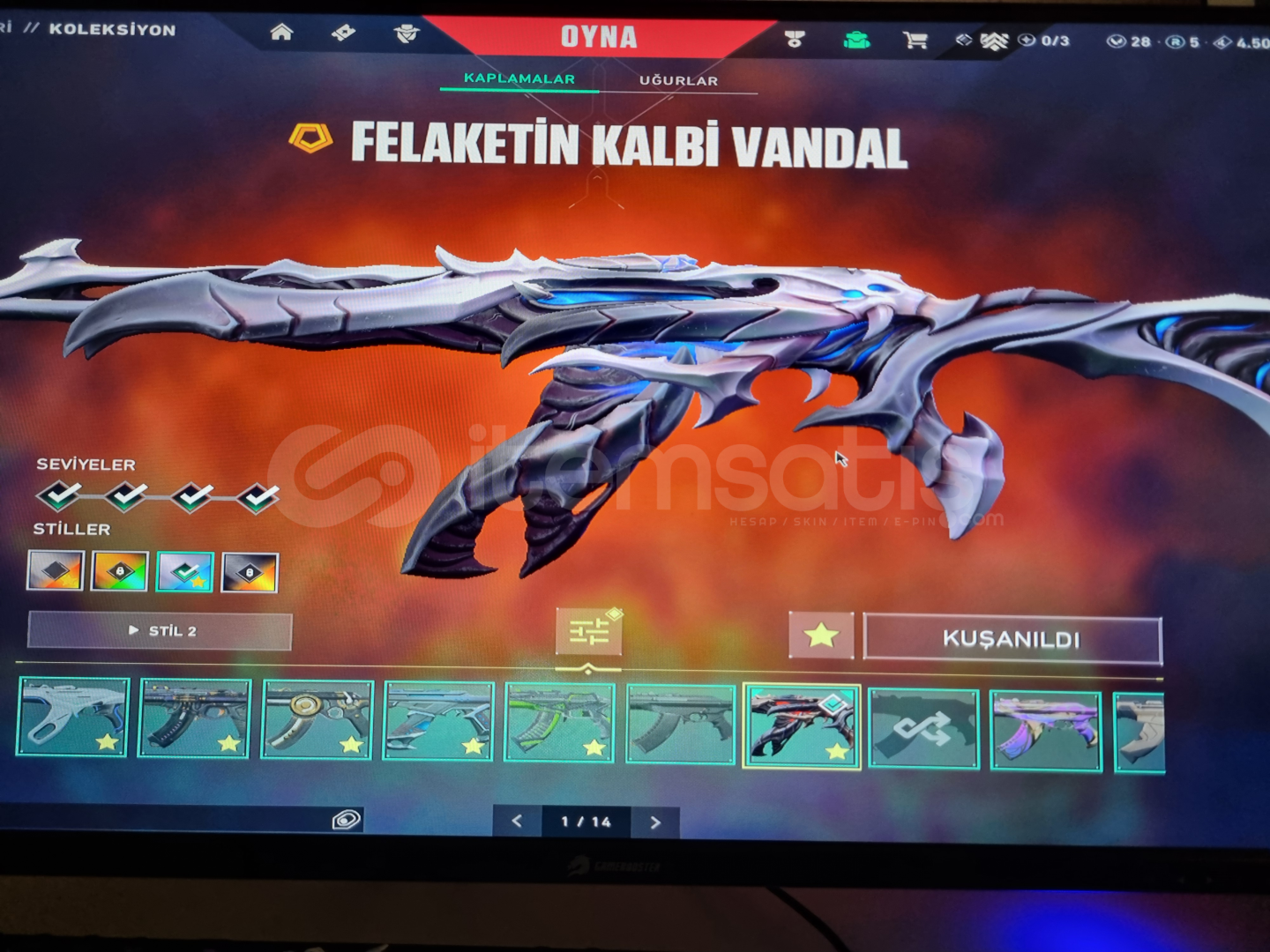 VandalKaos.kuronomi.evori.champions25.iyon.ejder.felaketinkalbi.köken.rgxdevamıda varBıçak YağmacıK.asilK.karaborsaKelebek.championsk.uzayavcısı.wctkarambit devamıda varYağmacı kaos iyon OPeratörYağmacı Seri Tetik Sır Çiçeği sheriffYağmacı fatih ghostYitik neptün clasicsYağmacı sihirpunk özel harekat phantom14 Vandal 12 Bıçak 10 Phantom 8 Sheriff
