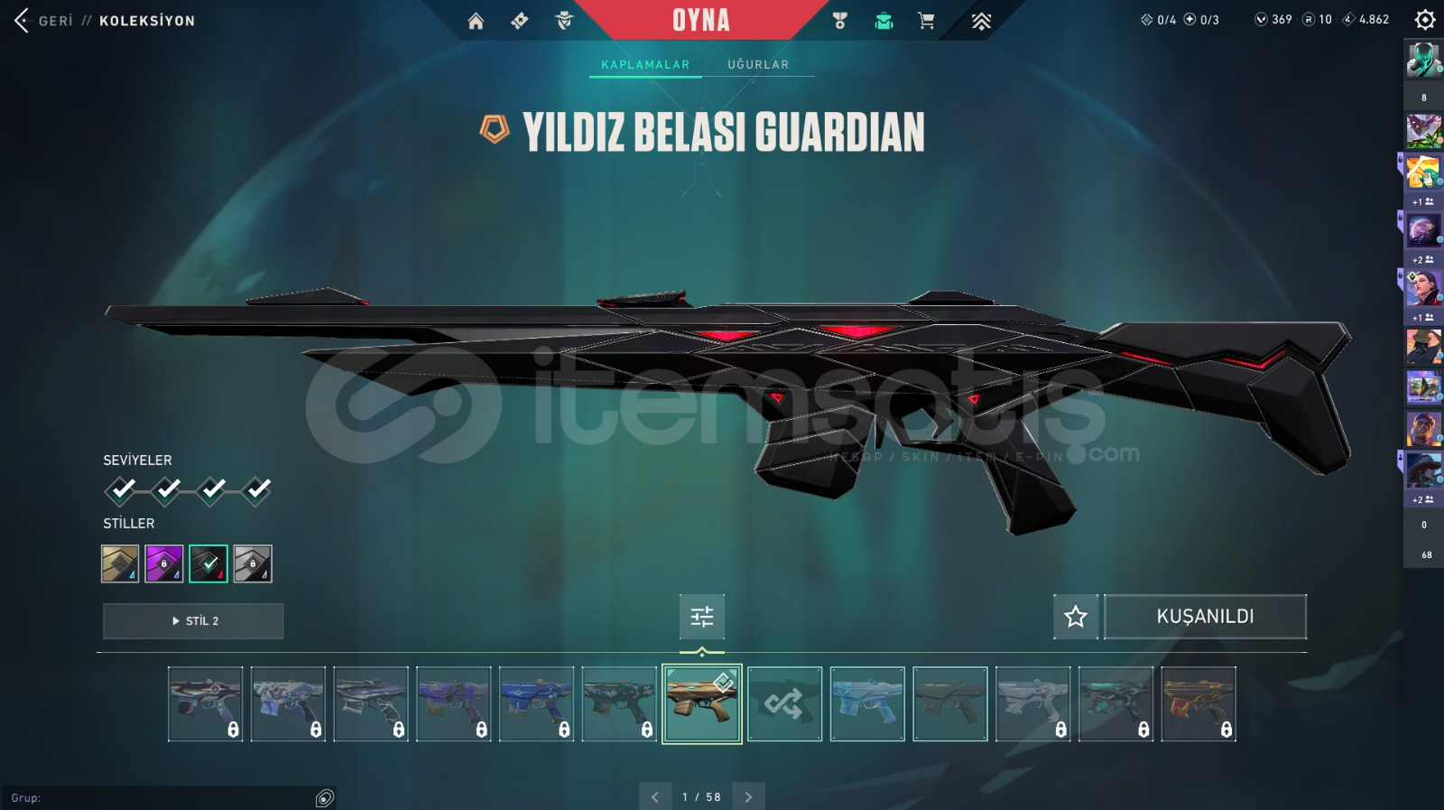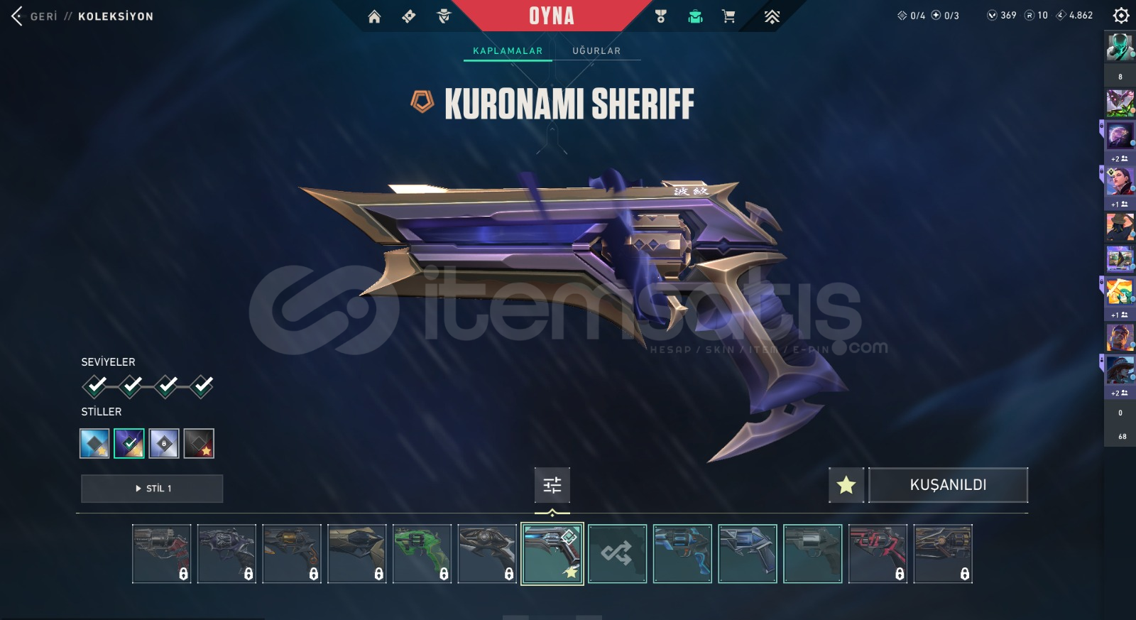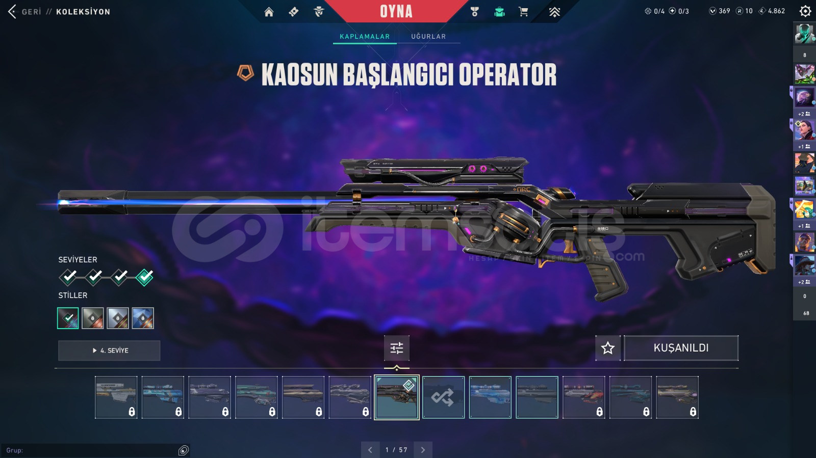 Hesap bilgileri:Seviye = 100Rank = Bronz 1Kullanıcı Adı = awparator #1212Hesaptaki Ekinler:Ghost =AnomaliSherrif =KuronomiGuardian =Yıldız BelasıPhantom =Asil, Özel Harekat, YağmacıVandal =Champions 2025, Kaos'un başlangıcıOperatör =KaosBıçaklar =2025 Champions Kelebek, Yağmacı Karambit
