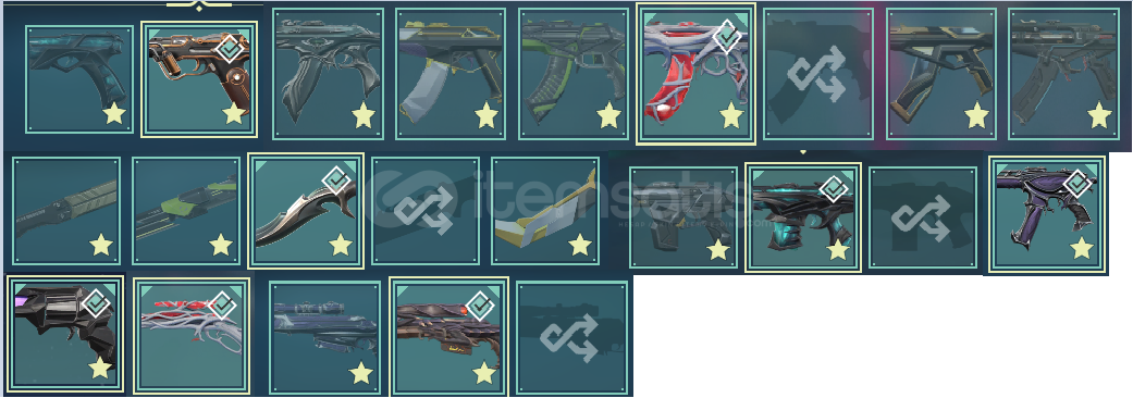 Ruination Ghost / Mage punk ghostSingularity Sheriff Rever SpectreRuination Phantom / Protocol Phantom Asil Vandal / Gaia Vandal / Champions 2025 Vandal / Cryostasis Vandal / Forsaken Vandal / Rgx VandalPrime 2.0 Karambit / Özel harekat bıçak / Rgx 11z pro blade / Forsaken BladeGaia Marshall Ejder Op / YAğmacı Op