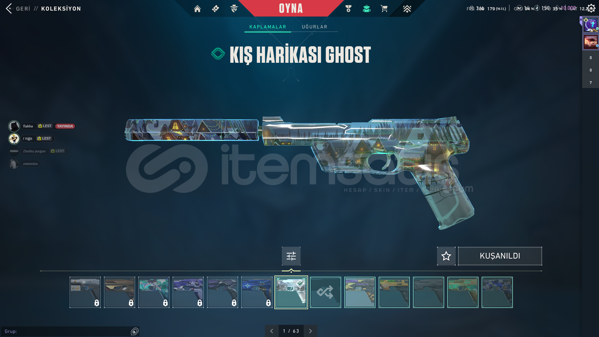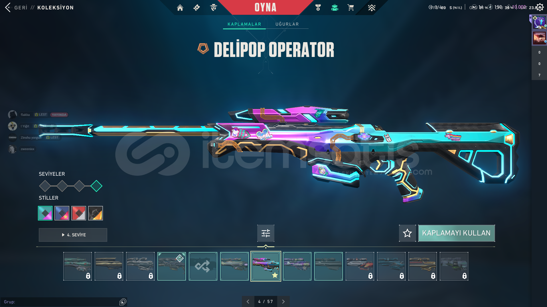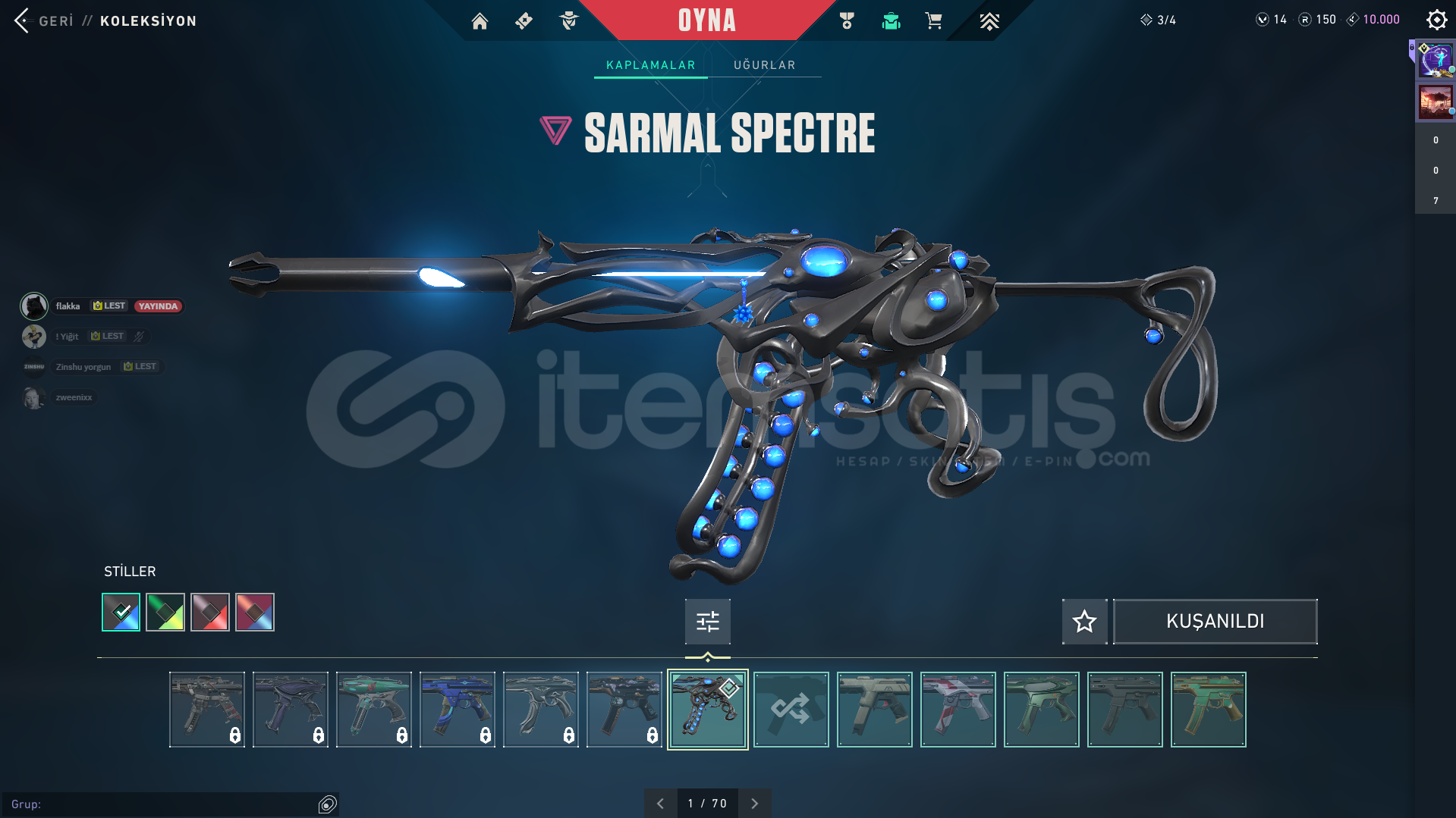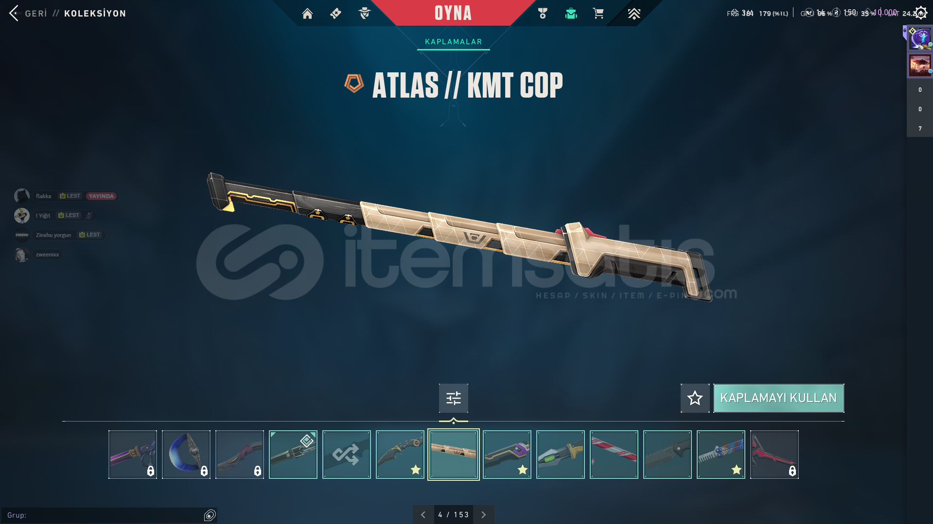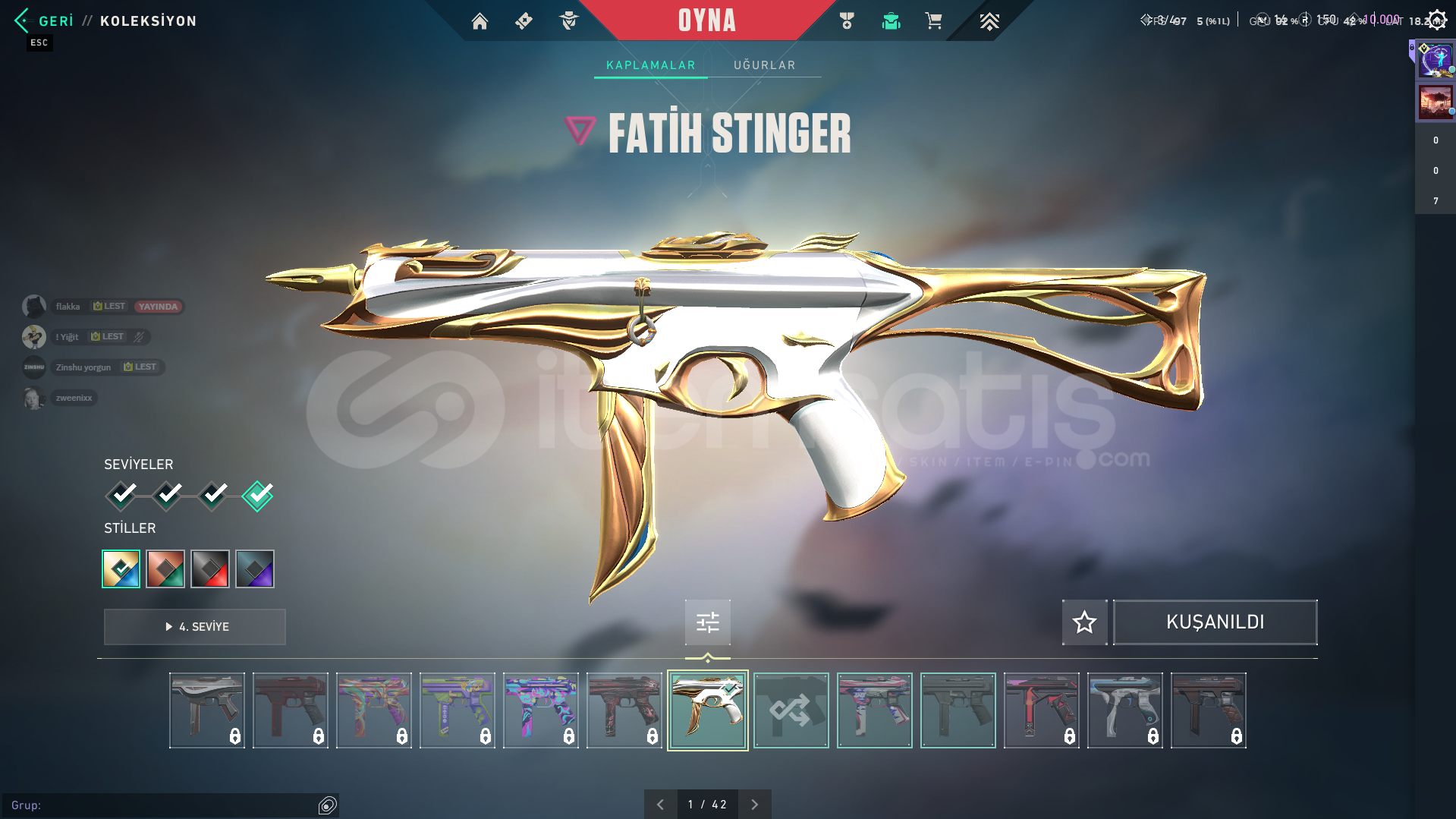 Hesapta birçok sprey ve kart bulunmaktadır.