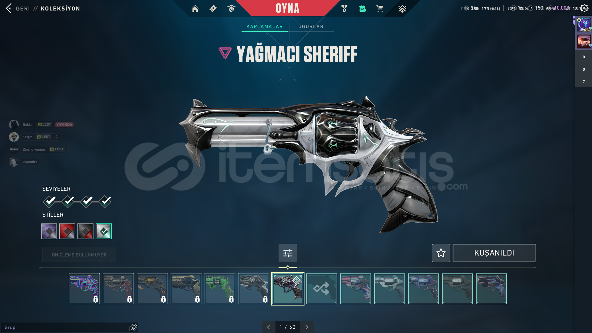 Hesapta 40 tane parayla alınan skin vardır.Güncel Rankı Altın 3tür.Hesap 210 Leveldir.Hesapta birçok battle pass olmak üzere 2.sezon Altın afet sezonunun battle passi mevcuttur.Hesapta Tejo ve Waylay dışındaki tüm ajanlar acıktır.Pazarlik payi vardir.Hesap Plat rankını gördü.Hesapta 210 Radyanit Puanı mevcuttur.Hesapta birçok sprey ve kart bulunmaktadır.Hesap ile alakalı akl...