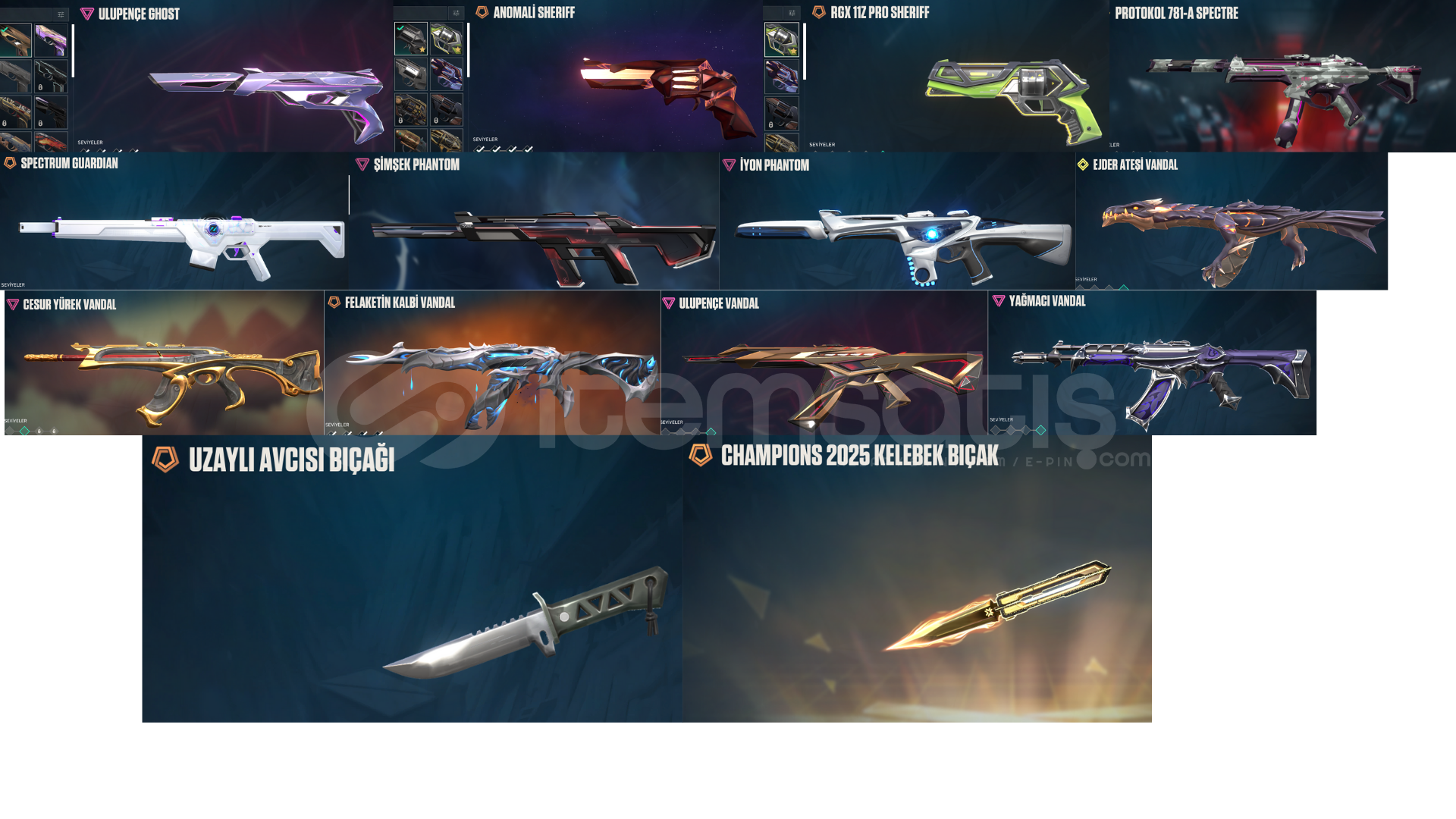 Hesapta bir sürü skin bulunmaktadır görsellerde gözüktüğü gibidir