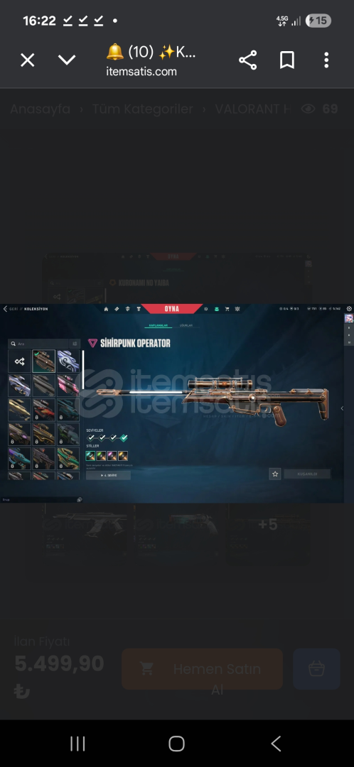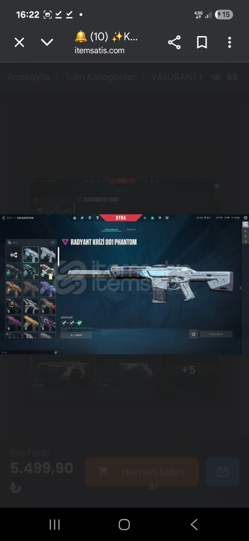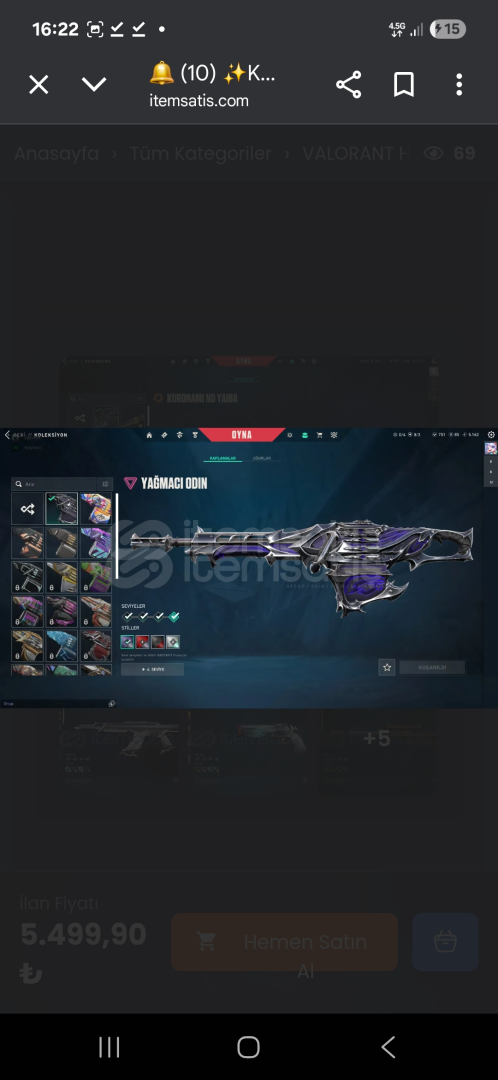 Hesaptaki tüm animasyonlu skinlerClassic: AsilFrenzy: ejder ateşiGhost: sihirpunk,gaiaSheriff: seri tetik,kuronomi,ışık muhafızlarıStinger: kaosSpectre:kuronomi,yağmacıBucky: AsilJudge: ejder ateşiBulldog:protokol,spektrumGuardian: neptünPhantom: sihirpunk,radyant krizi,afetVandal: rgx,asil;kuronomi,neptün,kızıl musibet,sihirpunk,soğuk çelik,Bıçaklar: rgx kelebek,asil balta,kuronomi hançer,kı...