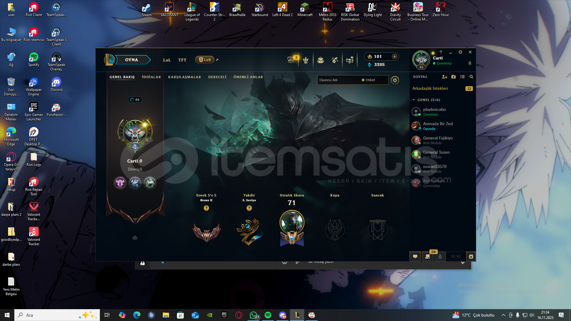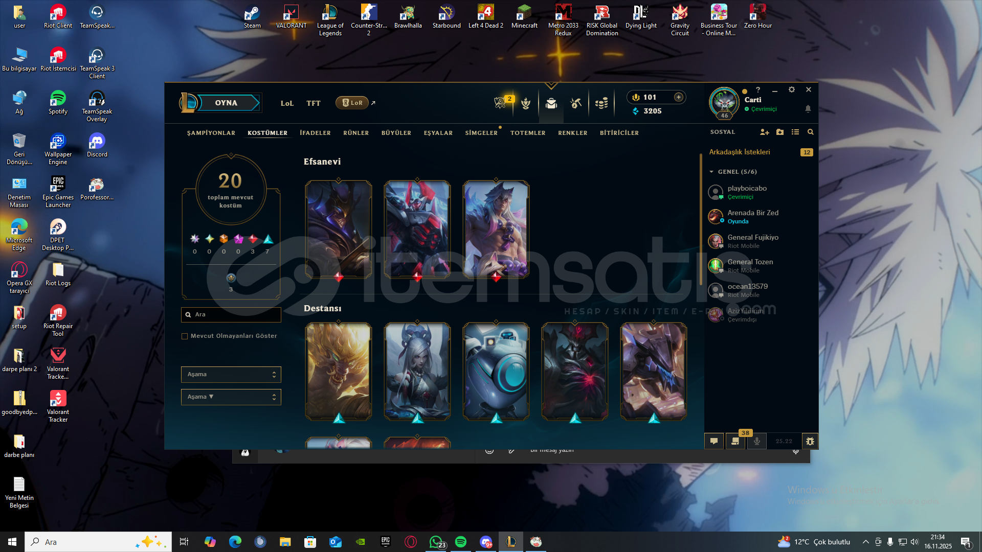 VANDAL:AEMONDIR/KURONAMİ/EJDER/DELİPOP/İYON/FELAKETİN KALBİPHANTOM:ZİFİRİ/SERİ TETİK/ASİLBIÇAK:ONİ KATANA/YAĞMACI KARAMBİT/UZAYLI AVCISI/SEMAVİ YELPAZE/KARABORSA KELEBEKSHERİFF: AEMONDIRGHOST:EVORİOPERATÖR:KÖKENHESABA 10K YATIRILDI 8K SATIYORUM İLK MAİL İLE DEVREDİLCEKTİR SORMAK İSTEDİĞİNİZ SORULAR VARSA DM YADA DC:Furkanss10 istek atıp konu...