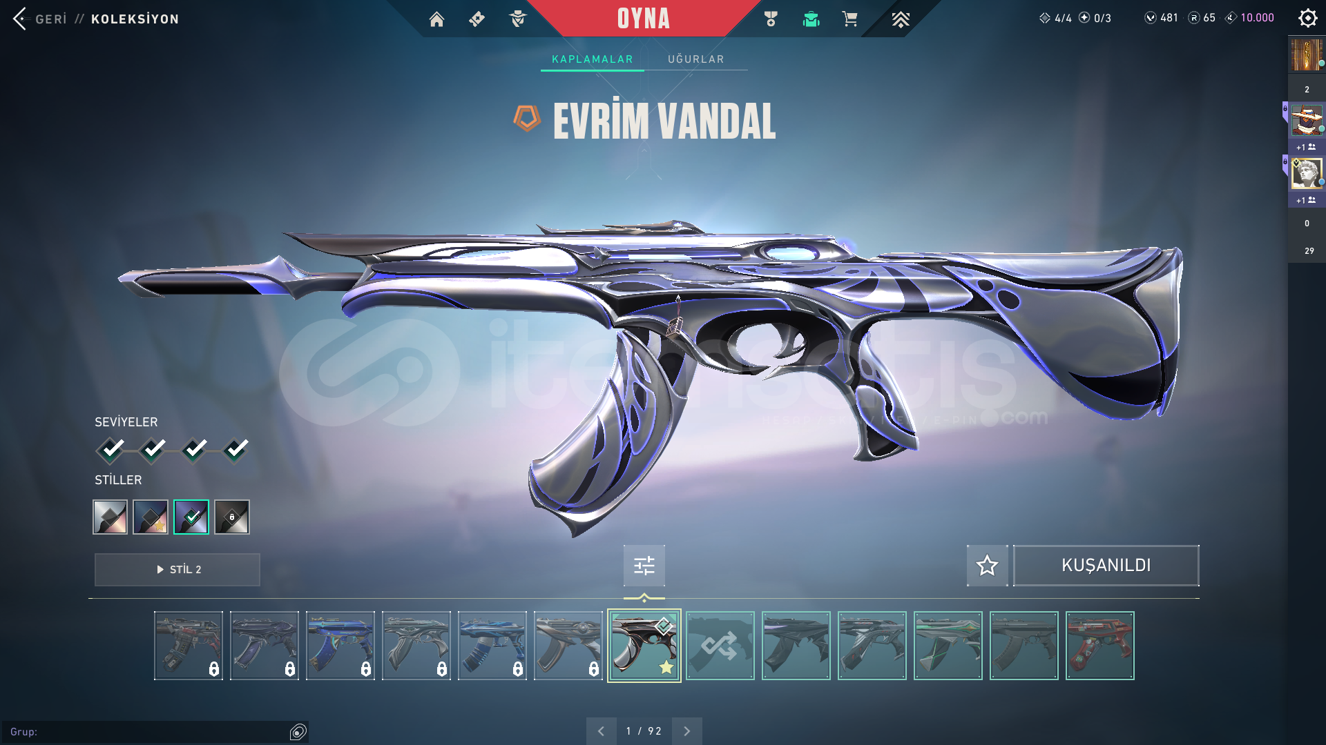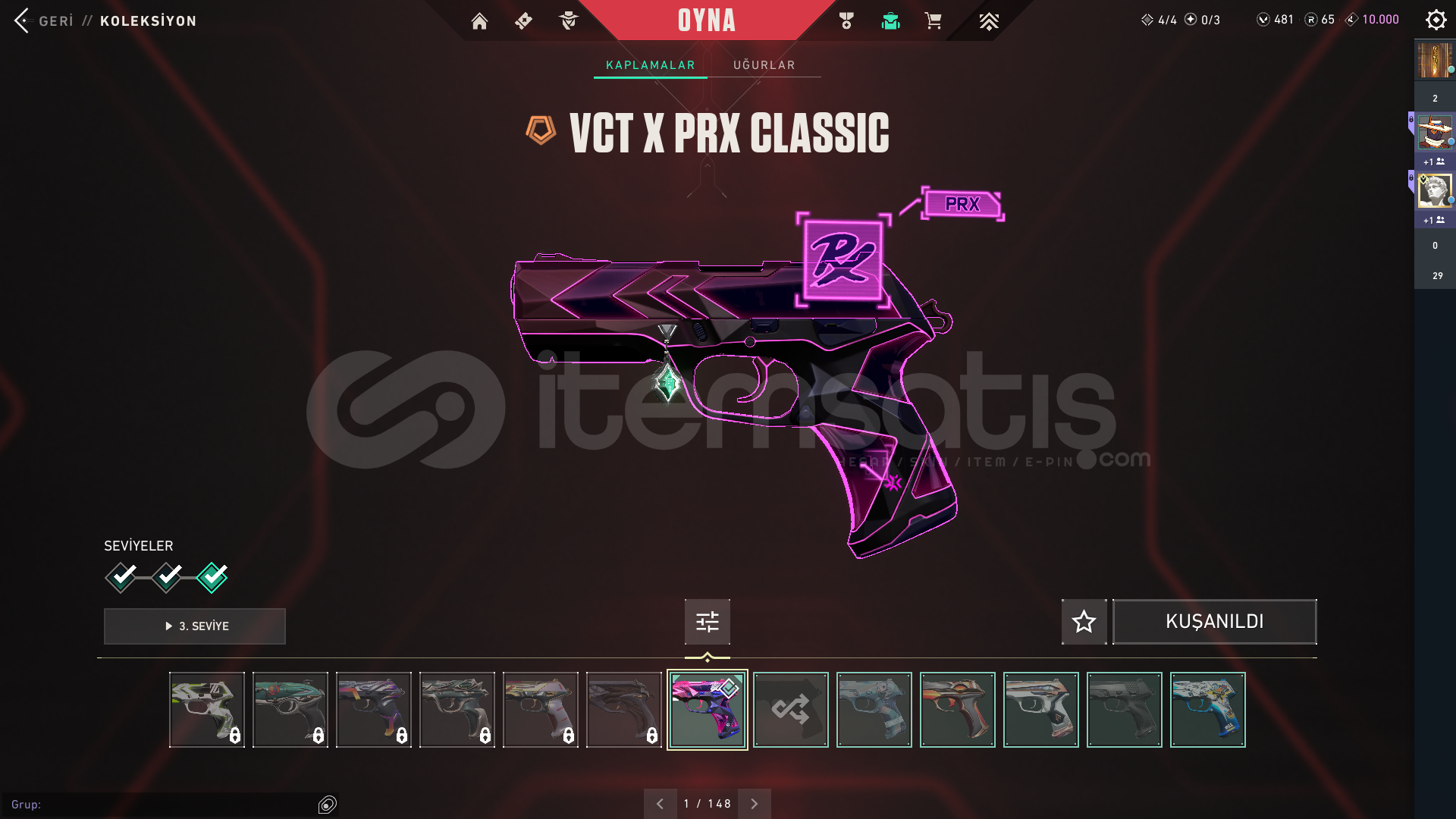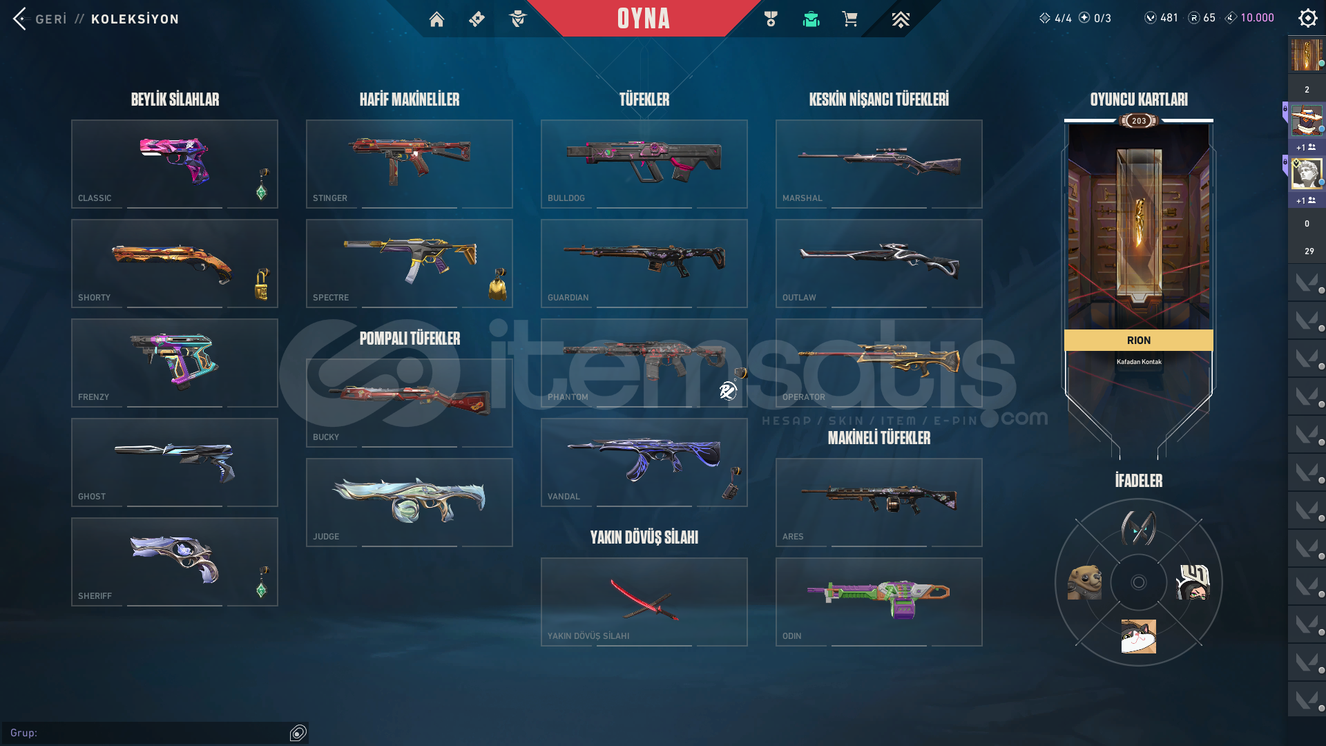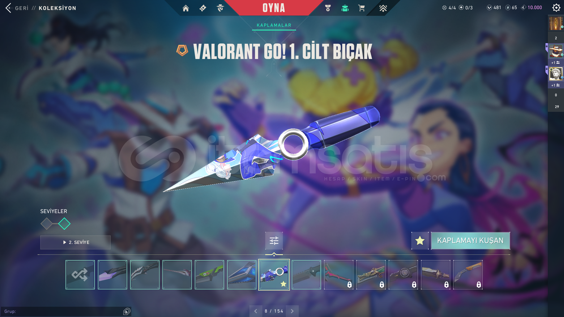 Hesapta 500 vp bulunmaktadır. İlk göz ağrım temiz mmr lı Elmas 3 immo sensli hesap.(çara girince otomatik vurduruyor)Classic: Vct x prx classic (6 tane bp)Shorty: 4 tane bpFrenzy: Delipop frenzy (3 tane bp)Ghost: Anomali, Gaia (4 tane bp)Sheriff: Sırçiçeği (5 tane bp)Stinger: Sürat canavarı (4 tane bp)Spectre: Asil spectre (5 tane bp)Bucky: Sürat canavarı (3 tane bp)Judge:&nbs...