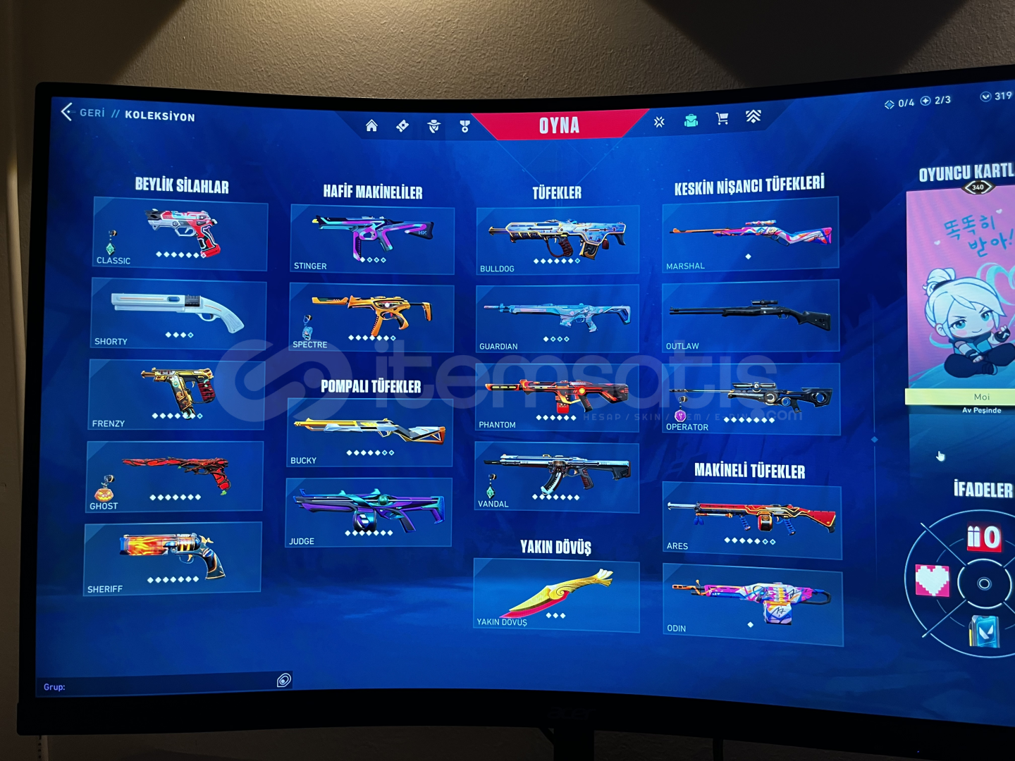 Paraya ihtiyacim oldugu için satiyorum max 3foto koyuluyordu onlari koydum Hesapta çogu battle pass açik ve nadir animasyonlu skinler var(pazarlik yapilir)HESAPTAANIMASYONLU OLARAKCLASSICLER:DELIPOP CLASSICSHORTY:NEPTÜN SHORTYFRENZY:ONI FRENZYGHOST:GAIA GHOSTSHERRIF:SERI TETIK,SIHIRPUNK SHERIFSPECTRE:IYON SPECTREBUCKY:ASIL BUCKYBULDOGG:ONI BULDOGGJUDGE:ZAMANIN ÖTESI JUDGEPHANTOM:RADIANT ENTERTAINMENT SYSTEM VE BLASTX PHANTOMVANDAL:KAOS,ONI,YAGMACI,CHAMPIONS2023,ULU...
