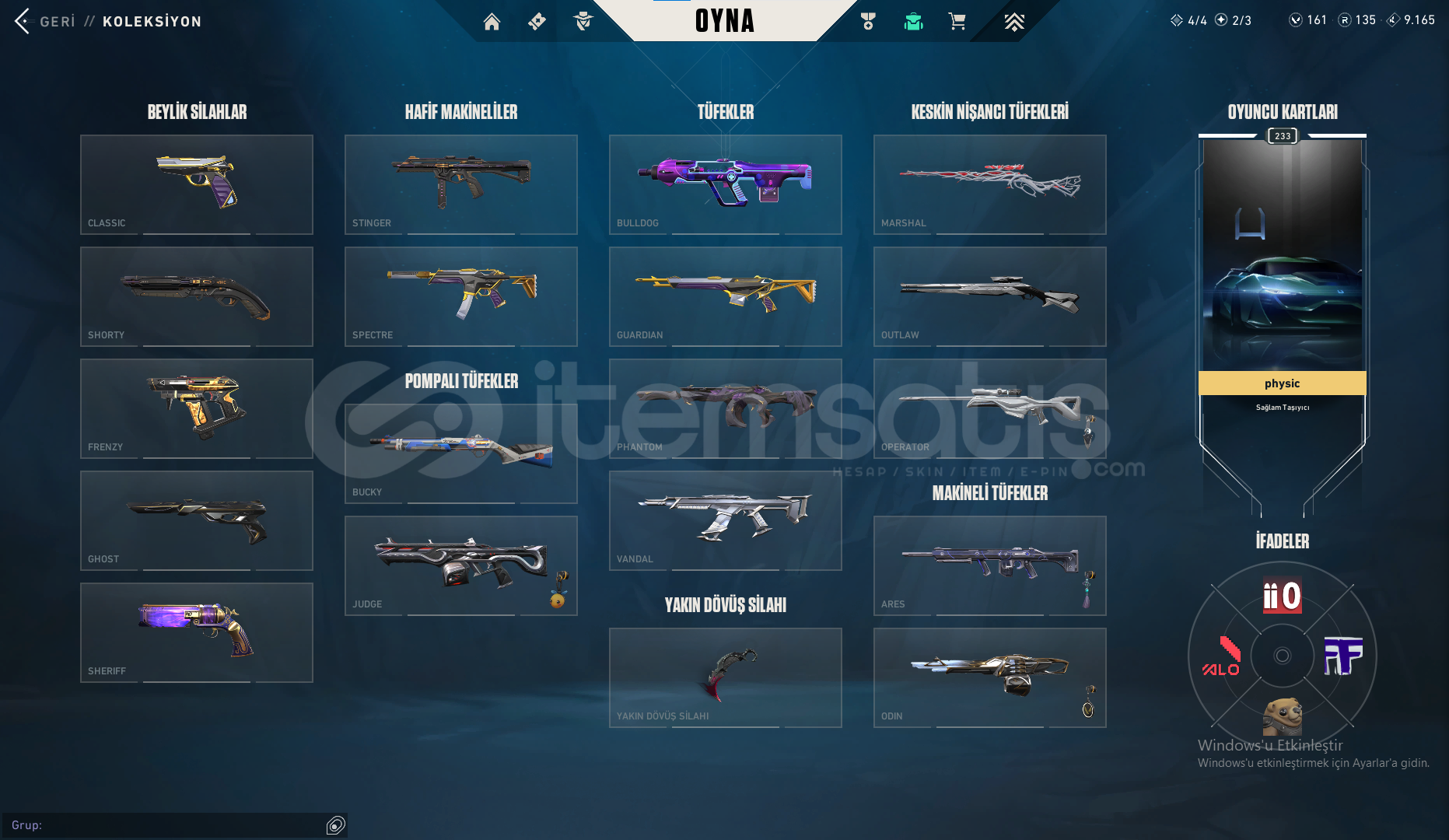 HESAPTA 24 TANE YUKSELTILEBILIR SKİN VARAsil ClassicKaos ShortyDelipop FrenzyUlupençe GhostYağmacı ve Seri Tetik SheriffKaos Stinger Anamoli ve Asil SpectreRES BulldogAsil GuardianIşık Muhafızı ve Zifiri PhantomKuronami ,Asil ,GAİA ,Cesur Yurek ,ARCANE VandalYağmacı Karambit Sır Çiçeği KunamiGaia MarshalYıldız Belası Outlawİon OperatörIşık Muhafızı OdinHESABA 12K YATIRILM...