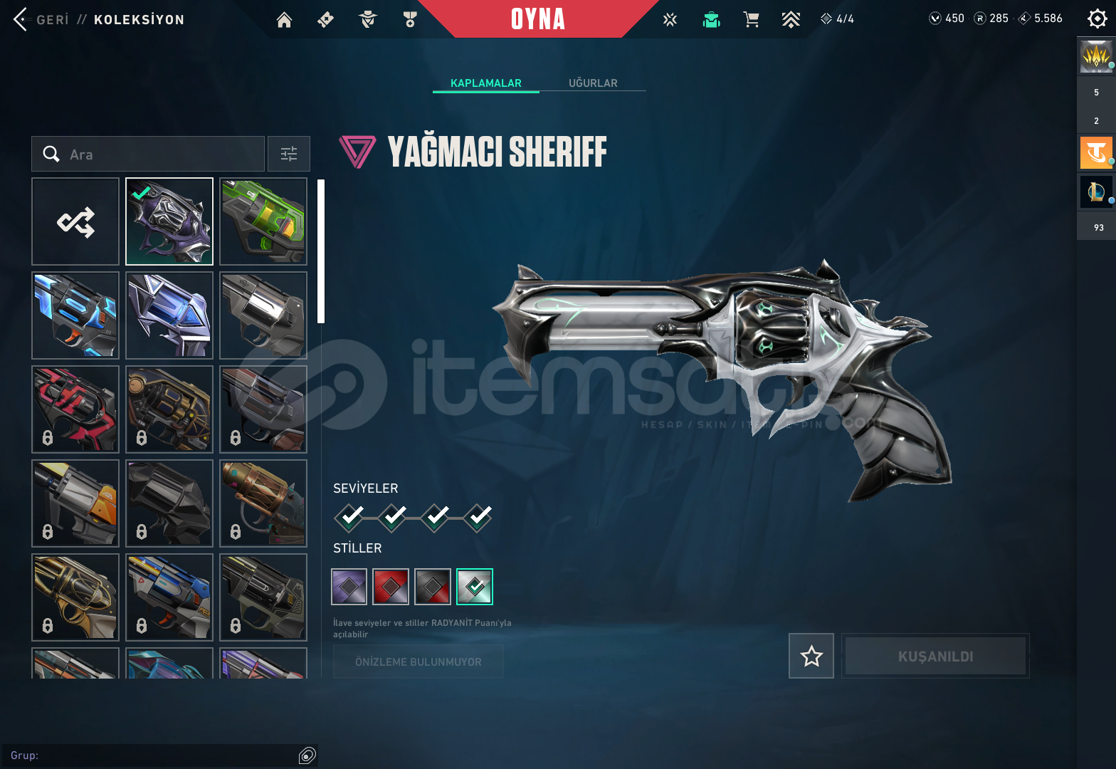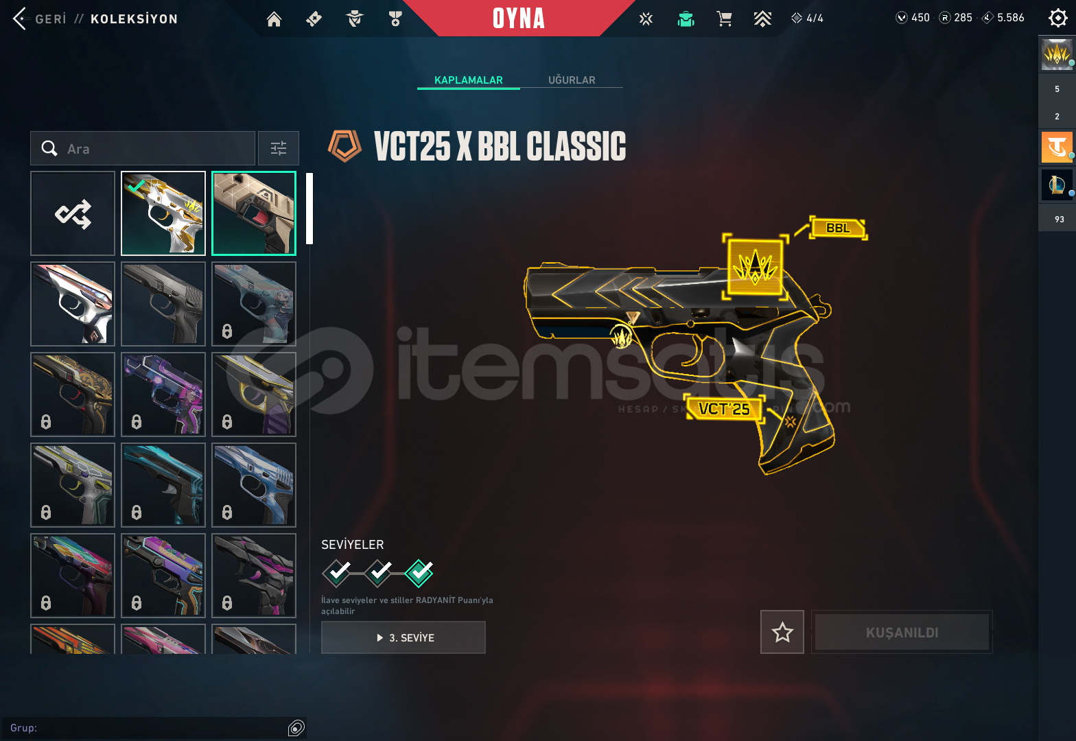 hesap 125 sv vandal: aemondırphantom:anomalısheriff: yağmacıclassic: BBL classicghost: sihir punkspectre:şimşekbıcak: asil karambit,iyon enerji kılıcı1 sezon battle pass güncel plat 3 yüksek mmr