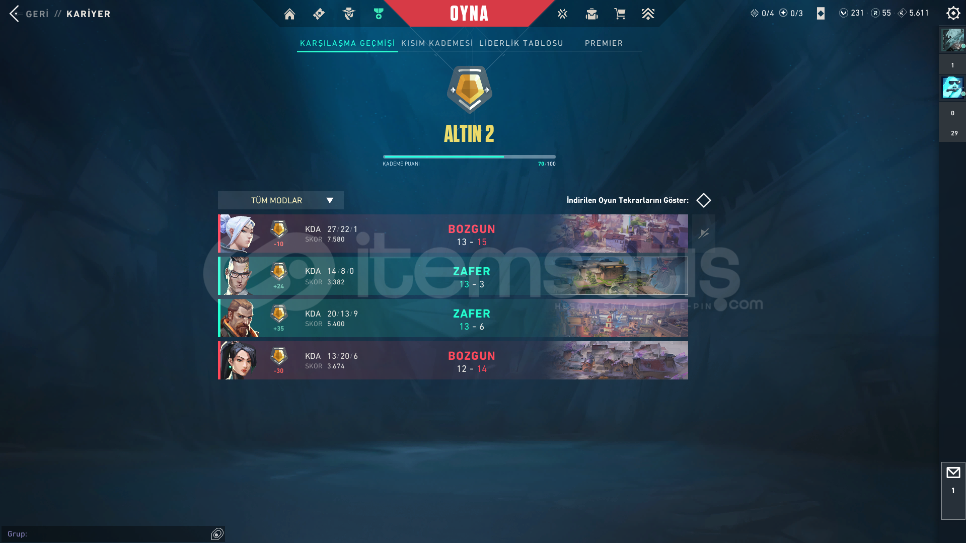 Hesapta 231 Valorant Point 55 RP 5611 KINGDOM CREDIT Bulunmaktadır