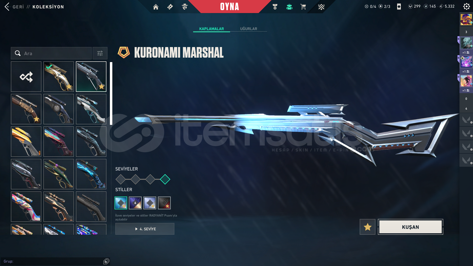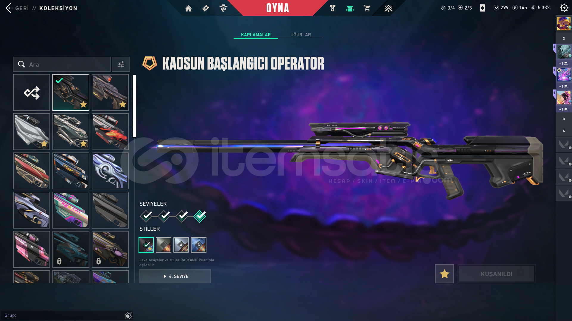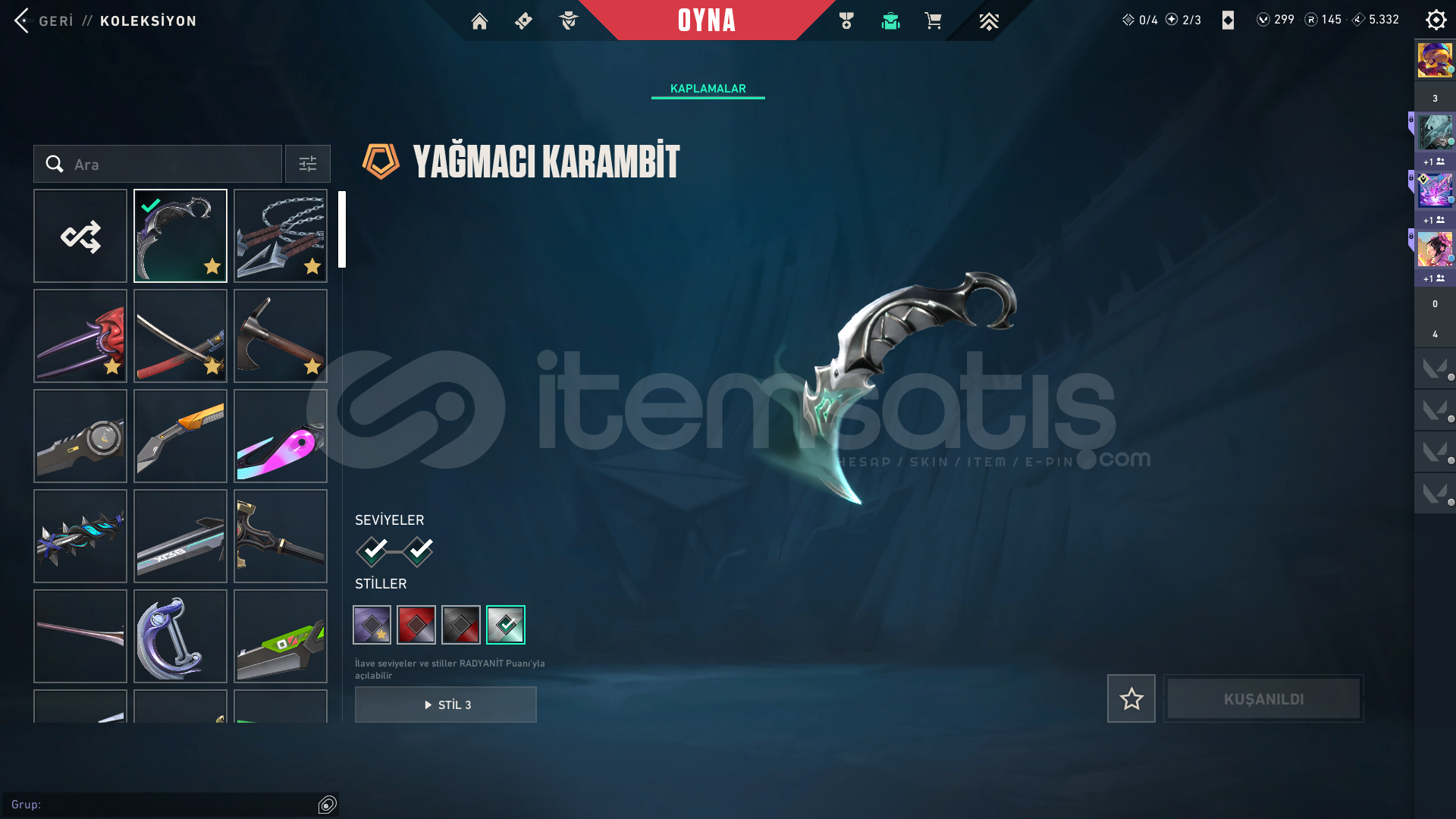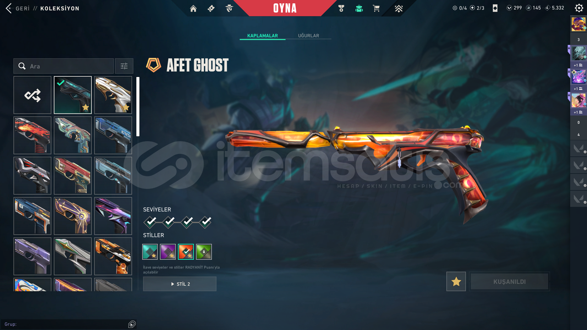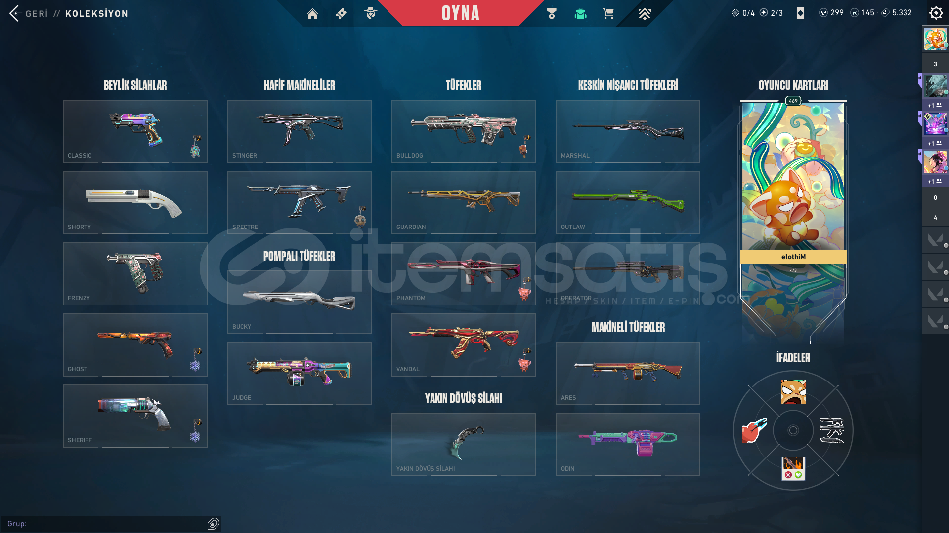 Vandal(16 Animasyonlu Skin Mevcut): YıldızBelası - Champions 2023 - Zamanın Ötesi - Ejder Ateşi - Yitik - Ejderin Buyruğu - Kuronami - Oni - Sürat Canavarı -Kaosun Başlangıcı - Yağmacı - Cesur Yürek - Ulupençe - İyon - Aemondir - AnomaliPhantom(5 Animasyonlu Skin Mevcut): Zamanın Ötesi - Seri Tetik - RGX - Işık Muhafızı - Champions 2024Bıçaklar(5 Animasyonlu Skin Mevcu...