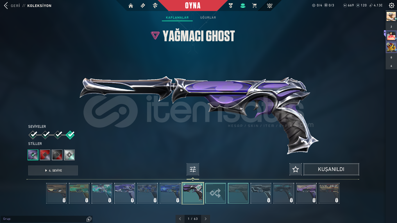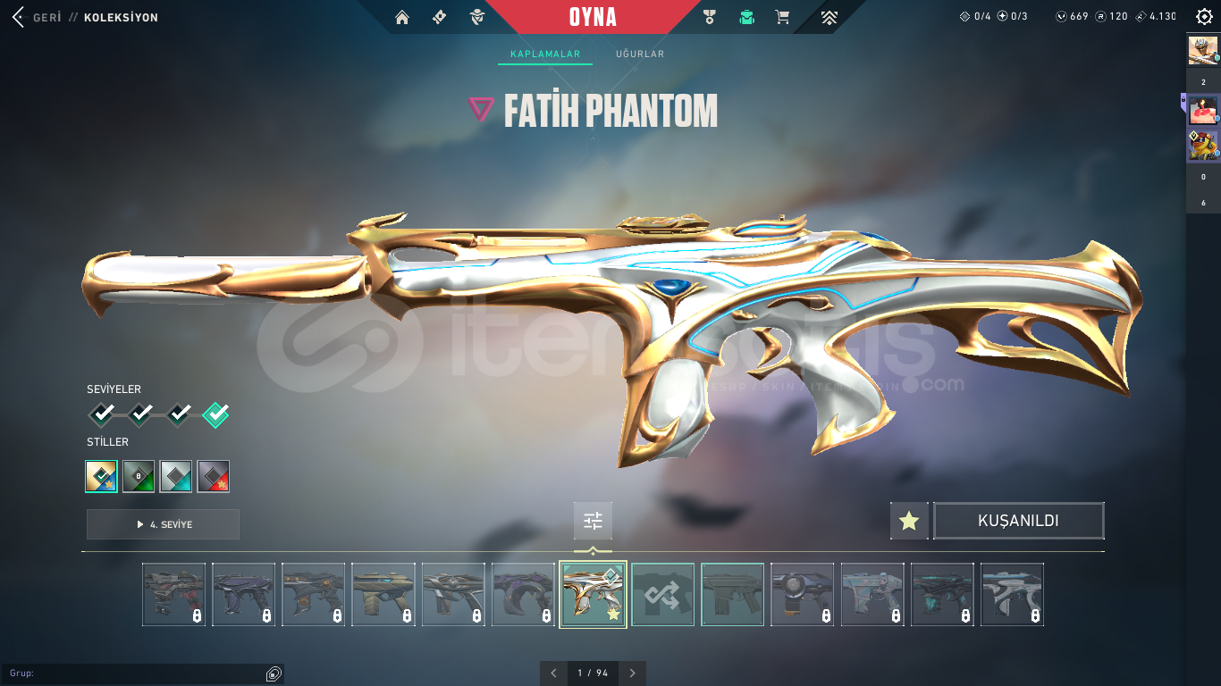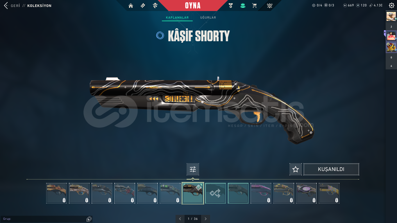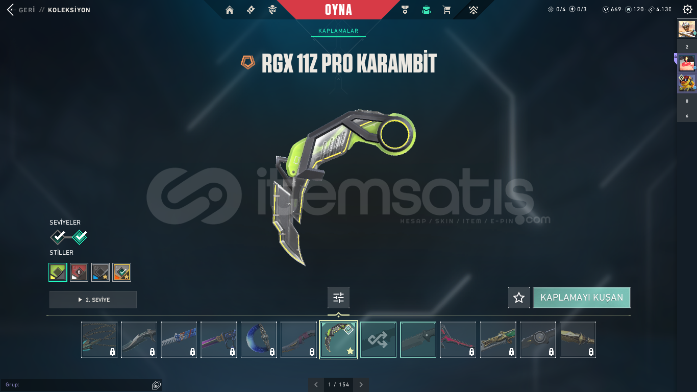 Skinler:Kuronami VandalAemondir VandalYitik VandalFatih PhantomYağmacı GhostRGX KarambitAçıklama: Ranked açıp keyfi oynanmıştır, alan kişiye maili de verilecektir. Hesaptaki skinlerin tüm renkleri ve seviyeleri açıktır, alıp keyfini çıkarmalık hesap. İçerisinde 660VP ve 120 Radyanit mevcut. Hesaba yatırılan VP tutarı hesap edilip fiyat biçimlendirilmiştir. C...