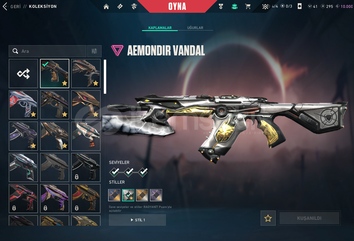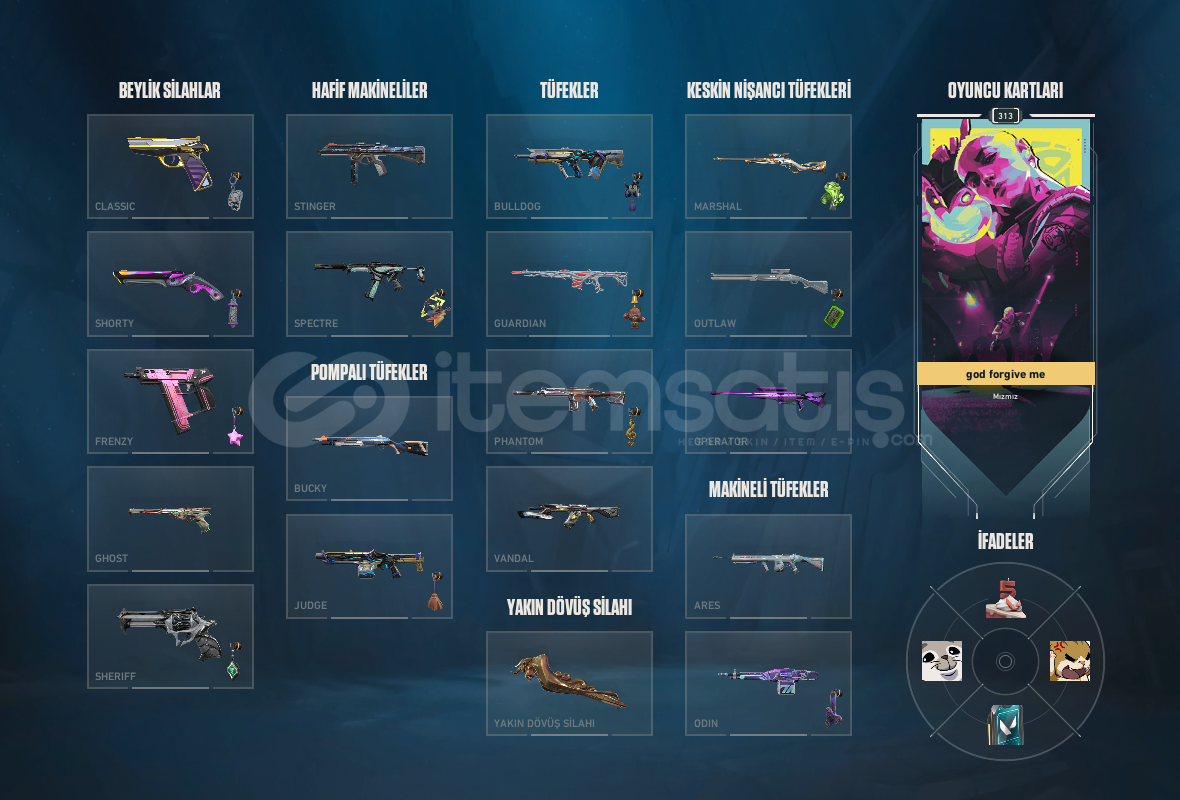 asil clasicfatih ghostyağmacı sheriffkaos stingerözel harekat ve yağmacı spectregaia guardianfatih marshallasil phantomkaos yağmacı aemondır felaketin kalbi gaia zamanın ötesi ve ulupençe toplam 7 tane vandal vardır battle passleri saymıyorumyağmacı karambit karaborsa kelebek semavi yelpaze ve battle pass skinleri vardıryıldız belası operatör313 level hesaptır ayrıca icinde Lol hesab&#...