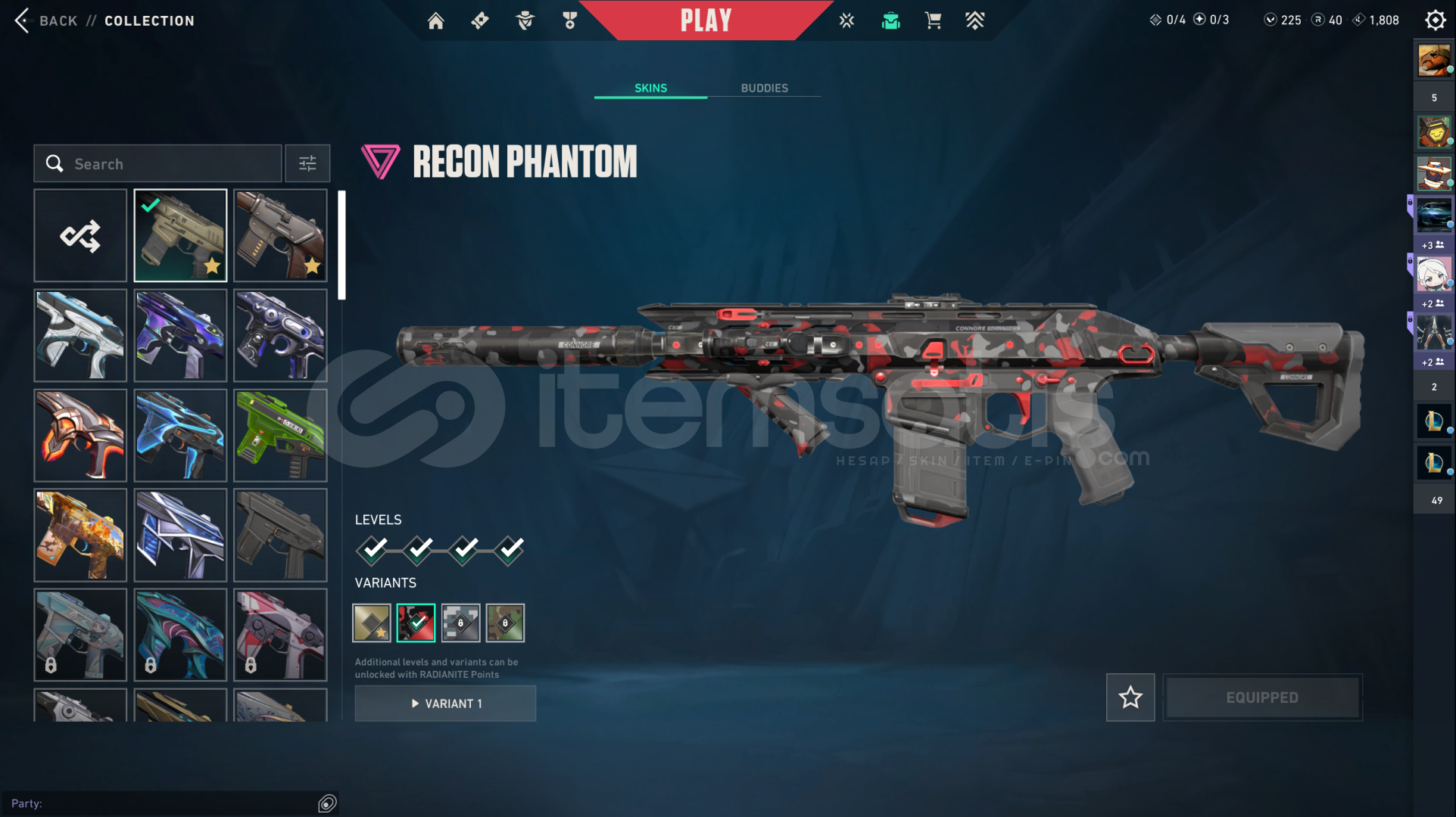 CLASSİC: Asil, VCTBBL SHORTY:2 Battlepass FRENZY: 5 Battlepass GHOST: Anomali ile Fatih, 7 Battlepass SHERİFF:İyon, Yağmacı,5 Battlepass STİNGER:4 Battlepass SPECTRE: Kuronomi ve 6 Battlepass BUCKY: Asil 5 Battlepass JUDGE: Ejderha , 7 Battlepass BULLDOG: Delipop 6 Battlepass GUARDİAN:Yıldız Belası8 Battlepass PHANTOM:Özel Harekat, Vahşi Batı 8 Battlepass VANDAL: Kaos,Arcane,Soğuk Çelik,Yitik,Kuronomi,Asil,Felaketin Kal...