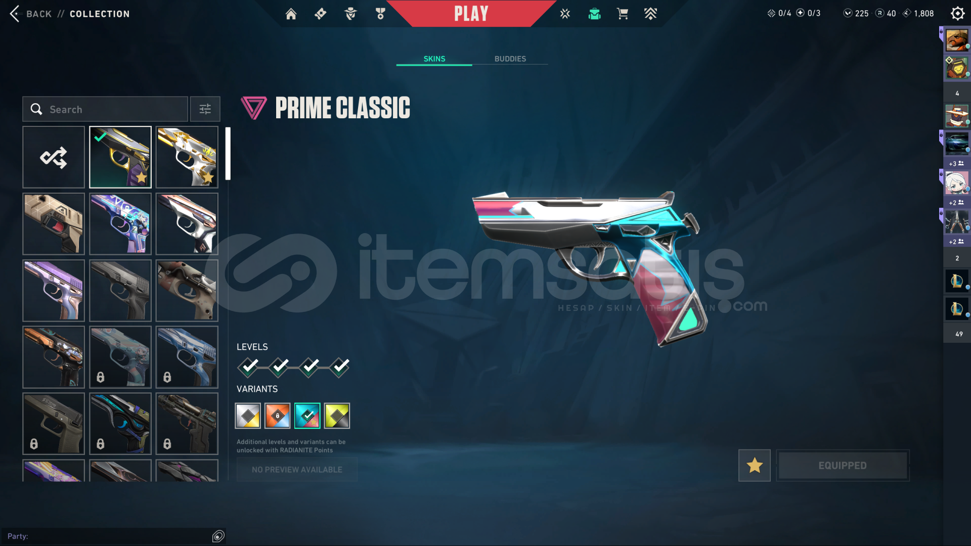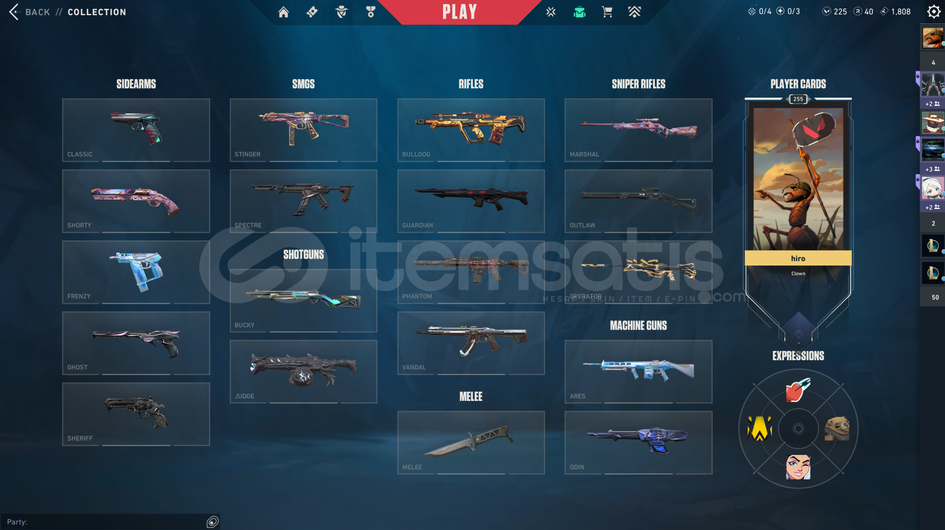 CLASSİC: Asil, VCTBBL SHORTY:2 Battlepass FRENZY: 5 Battlepass GHOST: Anomali ile Fatih, 7 Battlepass SHERİFF:İyon, Yağmacı,5 Battlepass STİNGER:4 Battlepass SPECTRE: Kuronomi ve 6 Battlepass BUCKY: Asil 5 Battlepass JUDGE: Ejderha , 7 Battlepass BULLDOG: Delipop 6 Battlepass GUARDİAN:Yıldız Belası8 Battlepass PHANTOM:Özel Harekat, Vahşi Batı 8 Battlepass VANDAL: Kaos,Arcane,Soğuk Çelik,Yitik,Kuronomi,Asil,Felaketin Kalbi,Yağmacı,Rgx,splashx BIÇAK:Uzaylı Avcısı,5 yıllık beta bıçak,Kuronomı,Onımaru,Asil karambit Rgx karambit,VCT KARAMBİT 7 Battlepass MARSHALL:5 Battlepass OUTLAW:4 Battlepass OPERATÖR:Ejderin Buyruğu,4 Battlepass ARES: 5 Battlepass ODİN: 3 Battlepass RANK:PLAT 1