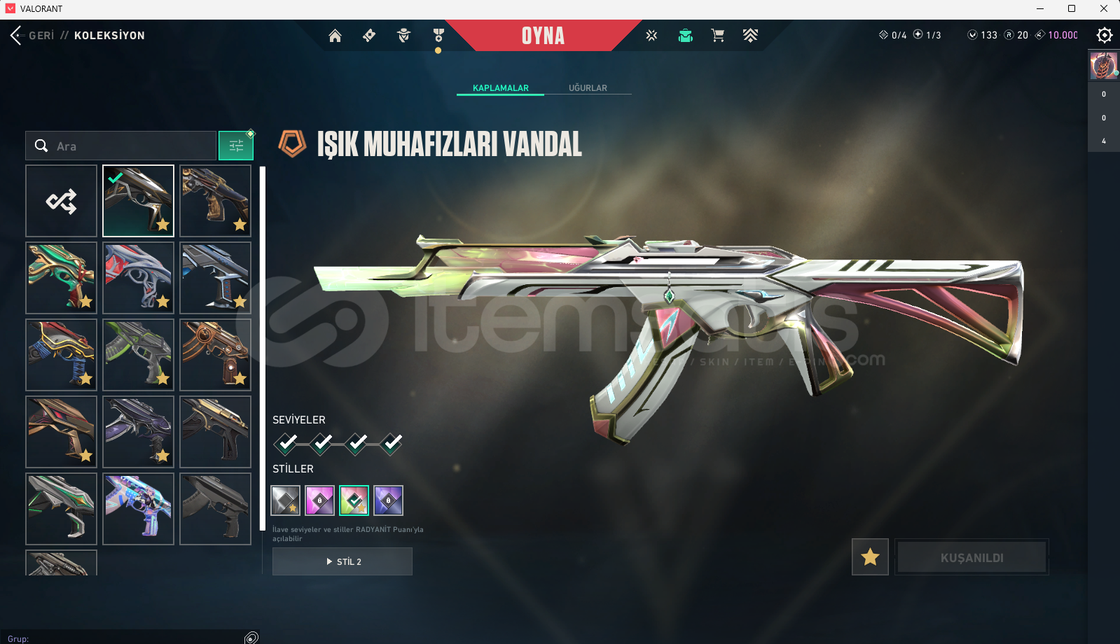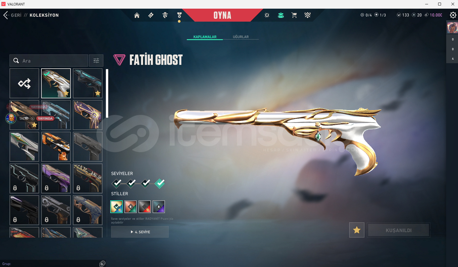 ASİL CLASSİC YERÇEKİMSEL URANYUM NÖREATEŞLEYİCİ CLASSİC FATİH GHOST ULUPENÇE GHOST AFET GHOST PROTOKOL SHERİFF AEMONDIR SHERİFF ANOMALİ SPECTRE AEMONDIR BUCKY ARMONDIR BULLDOG GAİA GUARDİAN FATİH MARSHAL YILDIZ BELASI OPERATOR BLASTX PHANTOM ONİ PHANTOM SİHİRPUNK PHANTOM YAĞMACI PHANTOM EJDERİN BUYRUĞU VANDAL YAĞMACI VANDAL ULUPENÇE VANDAL SİHİRPUNK VANDAL RGX VANDAL ONİ VANDAL KURONAMİ VNADAL IŞIK MUHAFIZLARI VANDAL GAİA VANDAL AEMONDIR VANDAL RGX KELEBEK YAĞMACI KARAMBİT ULUPENÇE BIÇAK SİHİRÇAKI SIRÇİÇEĞİ KUNAİ İYON KARAMBİT ASİL KARAMBİT AEMONDIR KILICI
