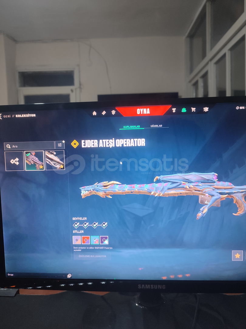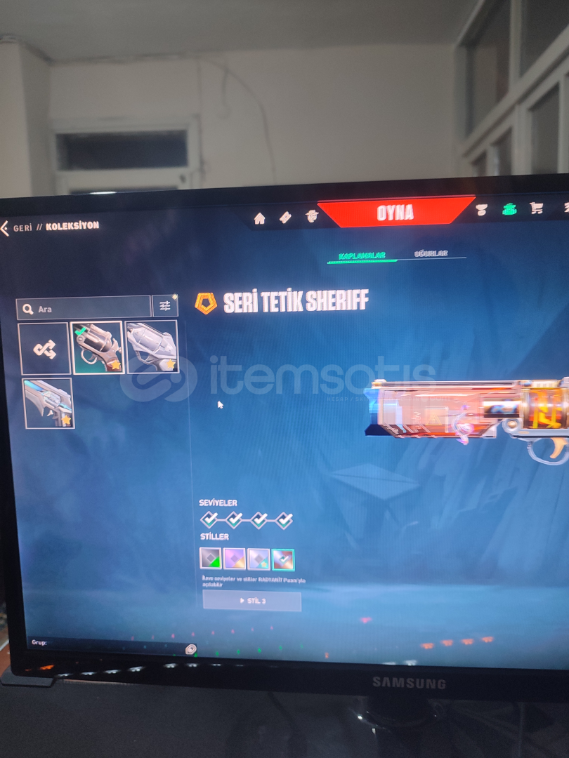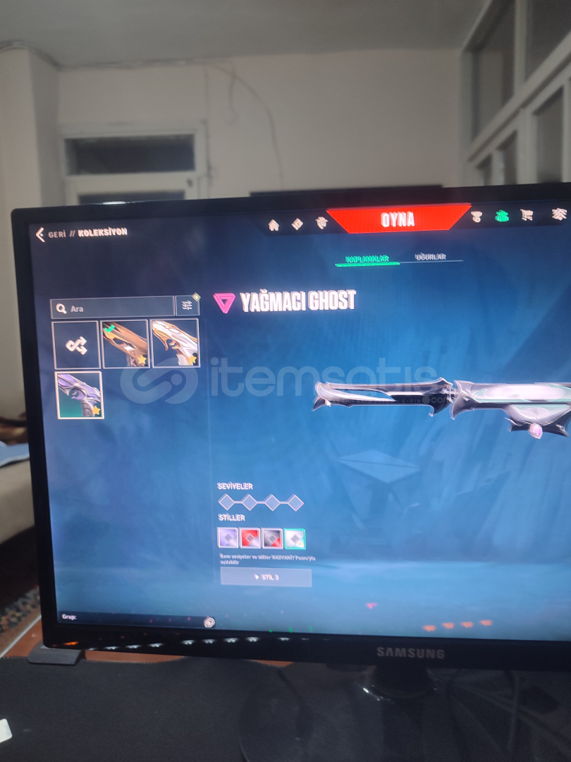 Seviye:(690)Vandal:(evori&ışık muhafızları&kuronami&kaos&asil&iyon&köken&yitik)Phantom:(spectrum& champions 2022&yağmacı& afet)Spectre:(asil&yağmacı)Operator:(ejder&ışık muhafızları)Odin:(yağmacı)Guardian:(yağmacı)Bulldog:(aemondir)Marshall:(gaia)Bucky:(radyant krizi)Judge:(ejder)classic:(asil)Ghost:(ulupençe&fatih&yağmacı)Sheriff:(kuronami&seri tetik&iyon)Bıçaklar:(yağ...