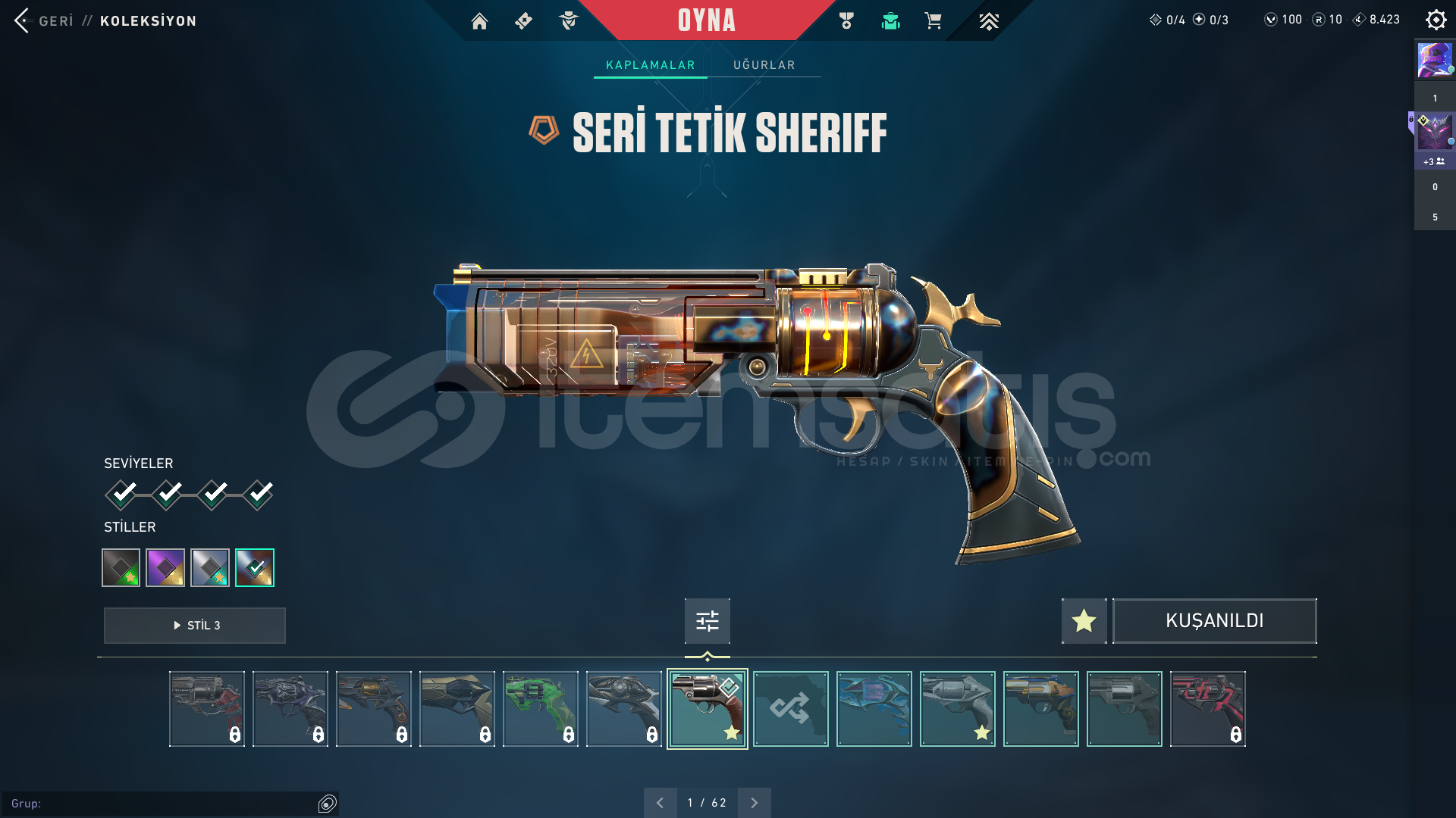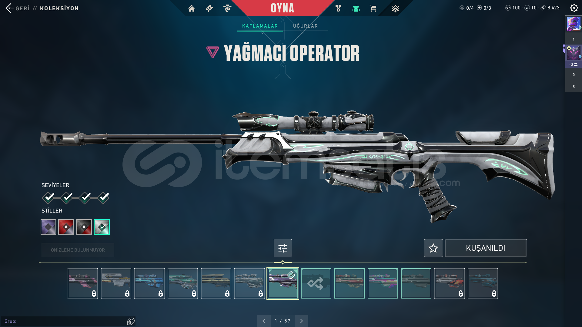 • Skinler: Cesur Yürek Vandal - Kaos Vandal - Gaia's Vengeance Vandal / Işık Muhafızları Vandal / Ulupençe-Oni-Yağmacı Vandal / Yağmacı Operator / Seri Tetik - İyon Sheriff / Fatih - Sihirpunk Ghost / Uzay Avcisi Gaia's İntikamı Bıçak / Sır Çiçeği - Özel Harekat - SihirPunk Phantom / VE DAHA SAYAMADIKLARIM İLE BİRLİKTE FAZLA SKİN MEVCUTTUR.