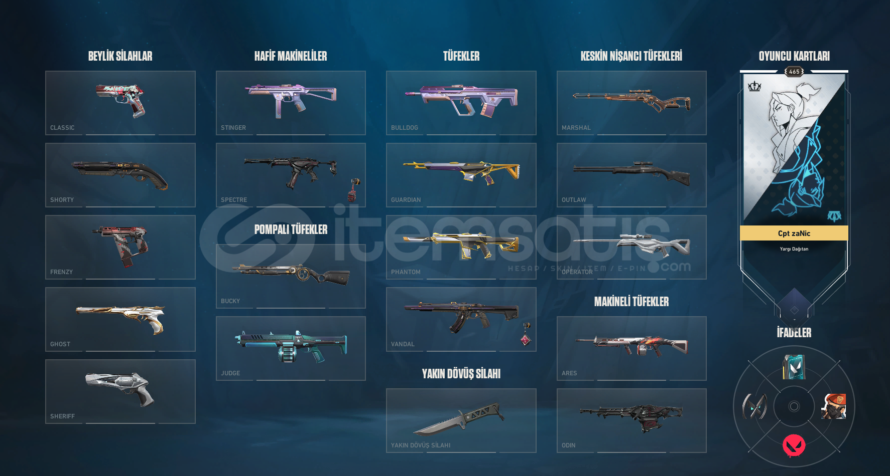 Hesapta en son 2. sezon önce oynandı ve immortal 3 bitirildi. Hesapta 197 vp , 515 radyanit bulunmaktadır. Hesap kişisel olarak bana aittir. Çalıntı hesap olmadığı için herhangi bir geri alınma durumu olmaz.Hesapta skin listesi:KAOS SHORTY FATİH GHOST YAĞMACI GHOSTİYON SHERRIF SERİ TETİK SHERRIF YAĞMACI SPECTREKÖKEN BUCKYASİL GUARDİANASİL PHANTOMYAĞMACI PHANT...