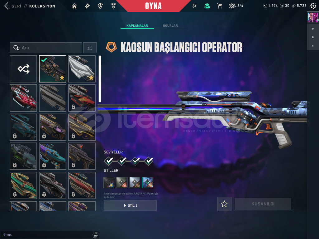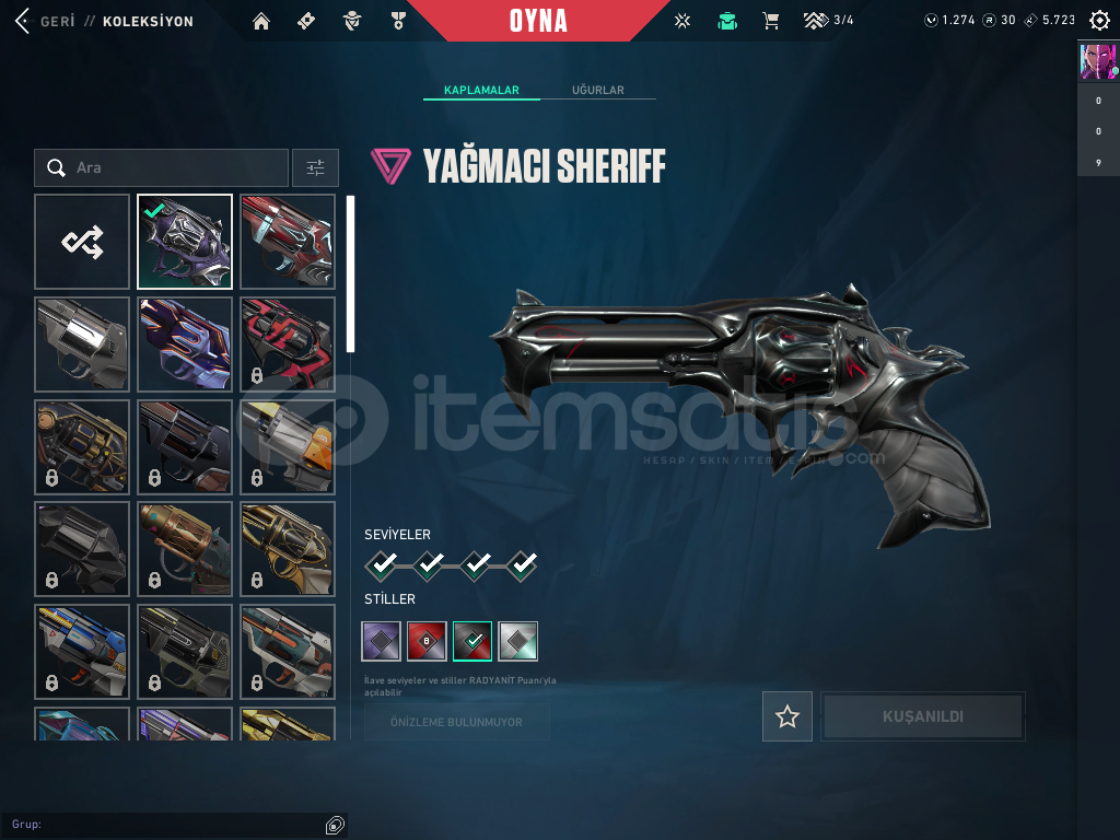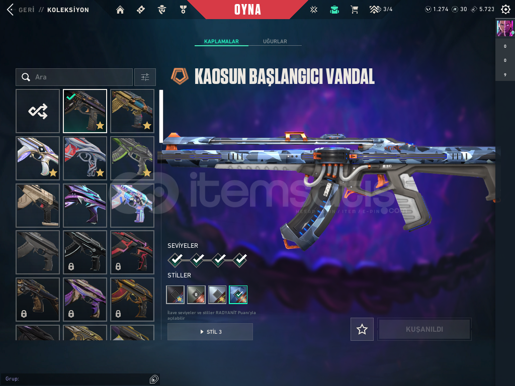 EFSANE FIRSAT HESAP VANDALLAR : KAOS, RGX PRO, GAİANIN İNTİKAMI , EVORİ , ARCANEOPARETÖR: İYON, KAOSPHANTOM : CHAMPİONS 2024 SHERRİF : YAĞMACI GHOST : FATİH CLASSİC: KOİ , SPECTRUM BIÇAKLAR ; VCT KARAMBİT, YAĞMACI KARAMBİTKAÇIRMAYIN BU FİYATA