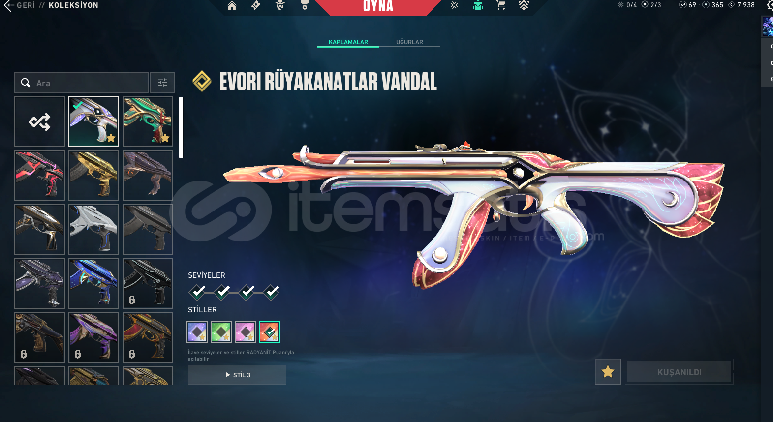 skinler asil classic, iyon frenzy, yağmacı ghost, ışık muhafızları ve yağmacı sheriff, iyon ve yağmacı spectre, yağmacı phantom, yağmacı vandal evori rüyakanatlar vandal iyon vandal ejderin buyruğu vandal ejder ateşi vandal ışık muhafızları vandal,köken operatör, iyon ares,yağmacı odin