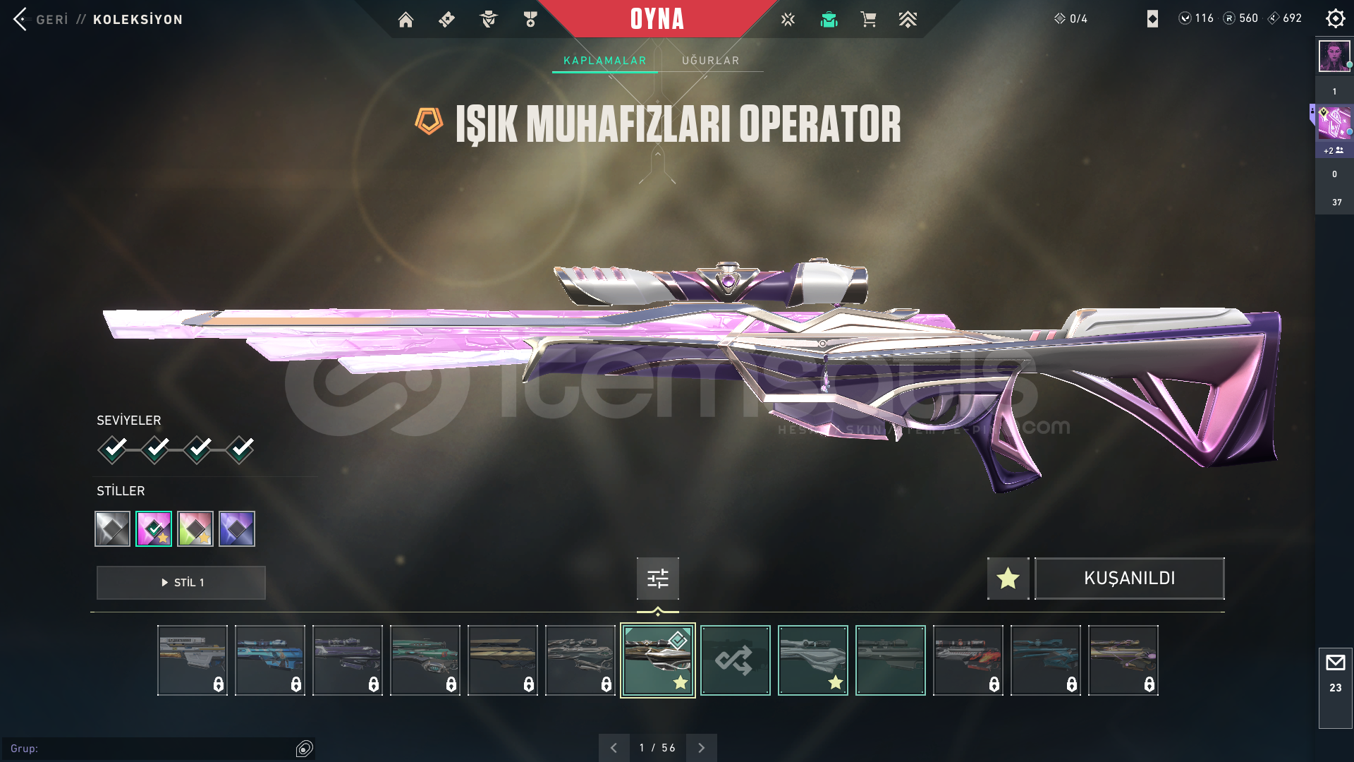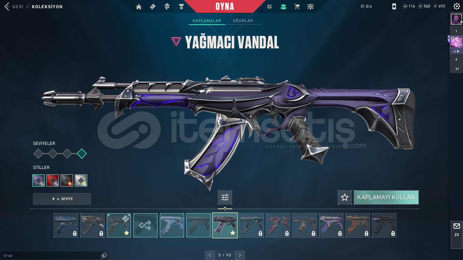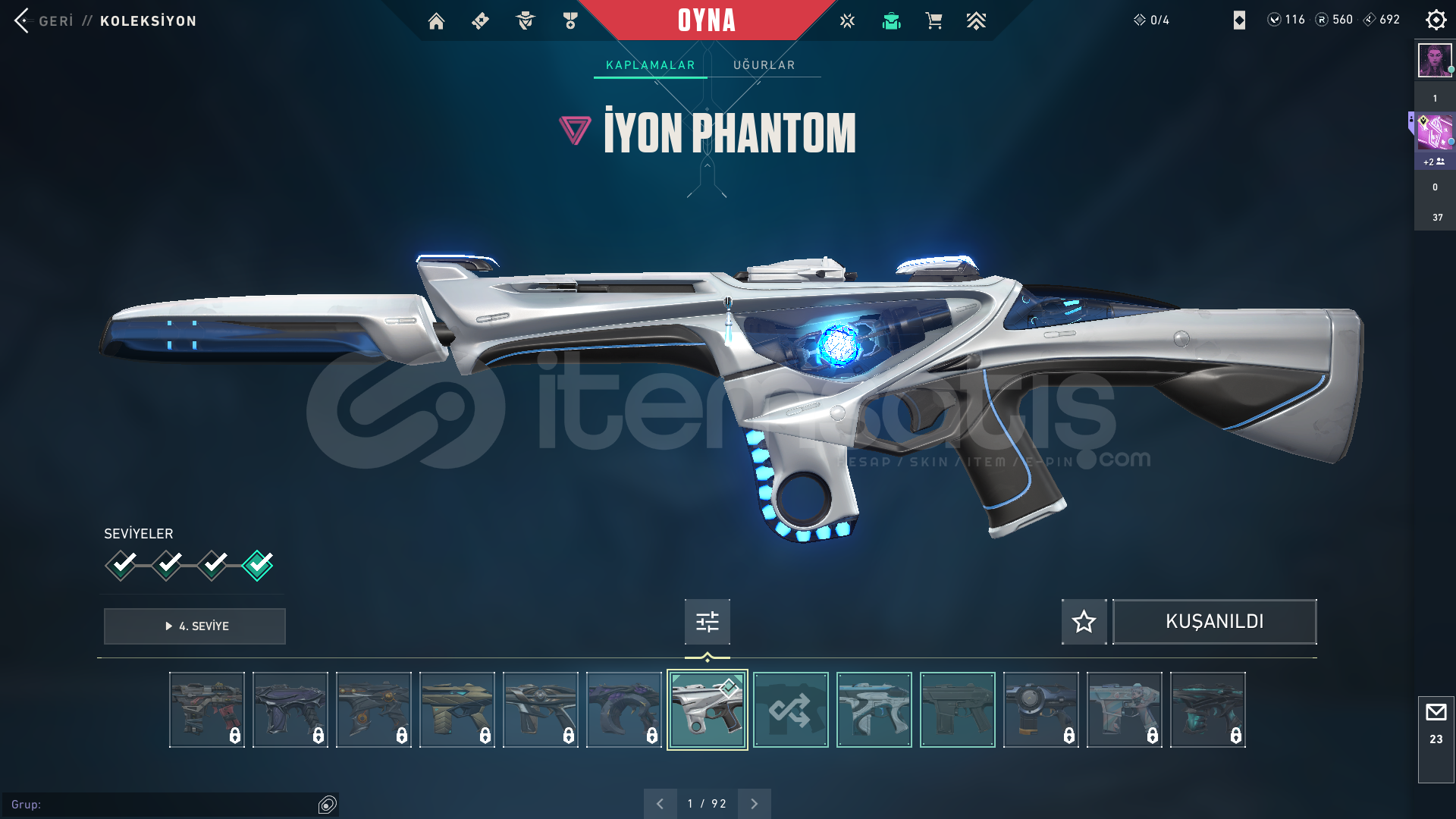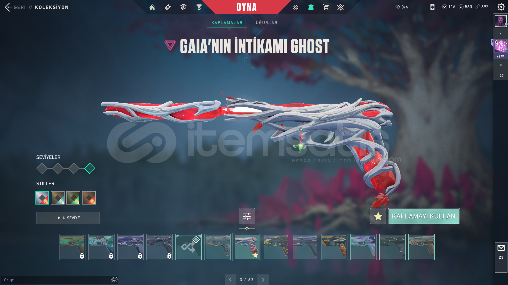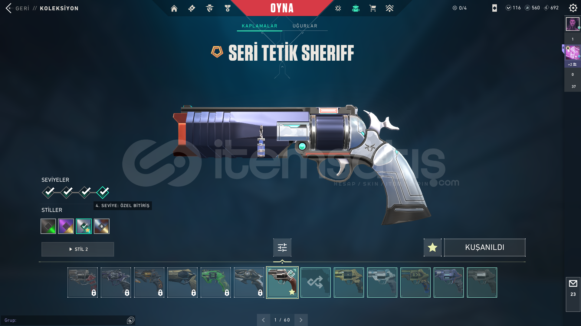 ✅ Mail: Mail değişimi yapılacaktır.✅ Level: 419✅ Rank: Plat✅ Knife / Bıçak Sayısı: 1✅ Skin Sayısı: 54🎯 Önemli Skinler:Elderflame VandalEvori Dreamwings SpectreAraxys OutlawNeo Frontier SheriffSentinels of Light OperatorBubble Pop Light StickSovereign OdinPrime ClassicIon PhantomRadiant Crisis 001 BuckyGaia's Vengeance GhostReaver VandalVe dahas...