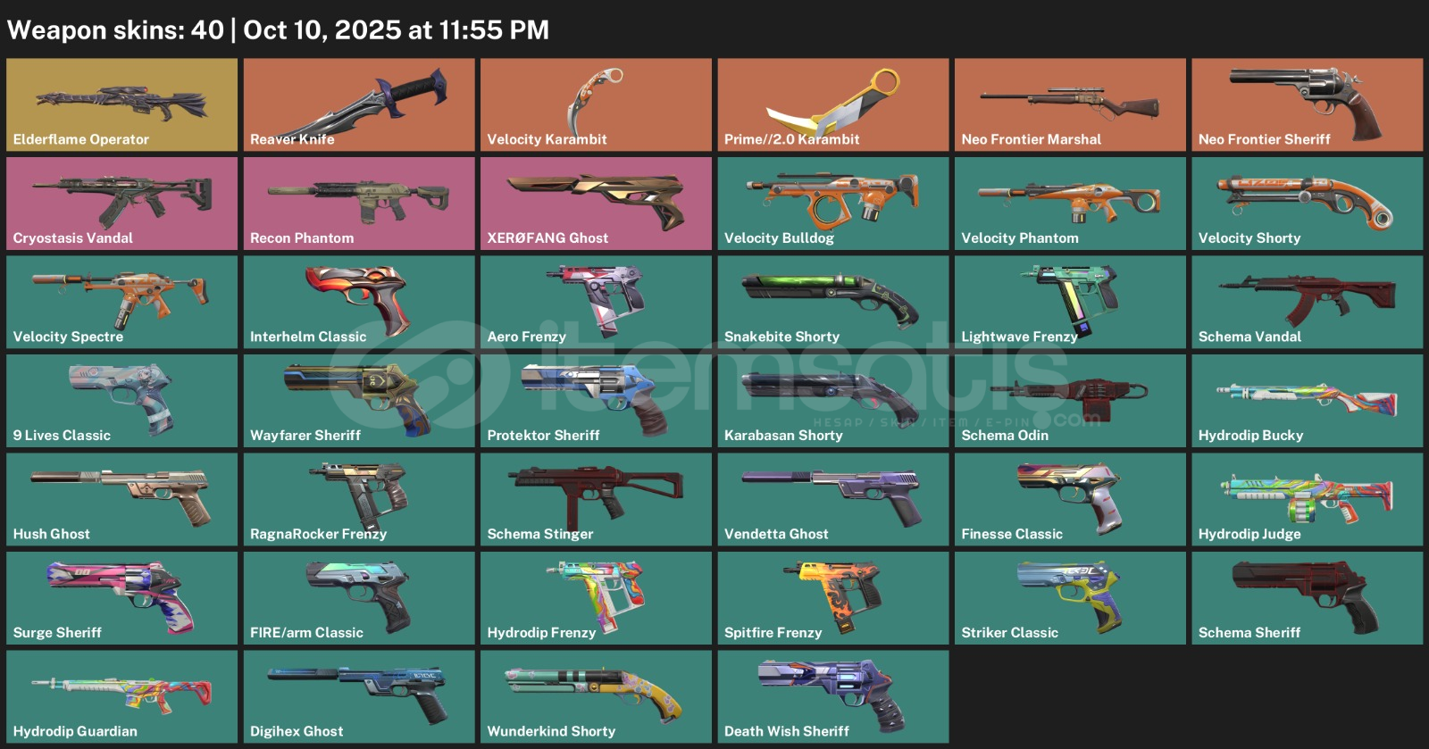 Ejder ateşi opSoğuk çelik vandalŞematik vandalÖzel harekat phantomHızlı ve ölümcül phantomSeri tetik sheriffVe +5 animasyonsuz sheriff skini dahaAsil 2.0 karambitYağmacı bıçakHızlı ve ölümcül bıçakSeri tetik MarshalUlupençe ghostVe +3 Animasyonsuz ghost skini daha+5 Animasyonsuz Shorty deseni+7 Animasyonsuz Classic Hesapta hızlı ve ölümcül seti vardı...