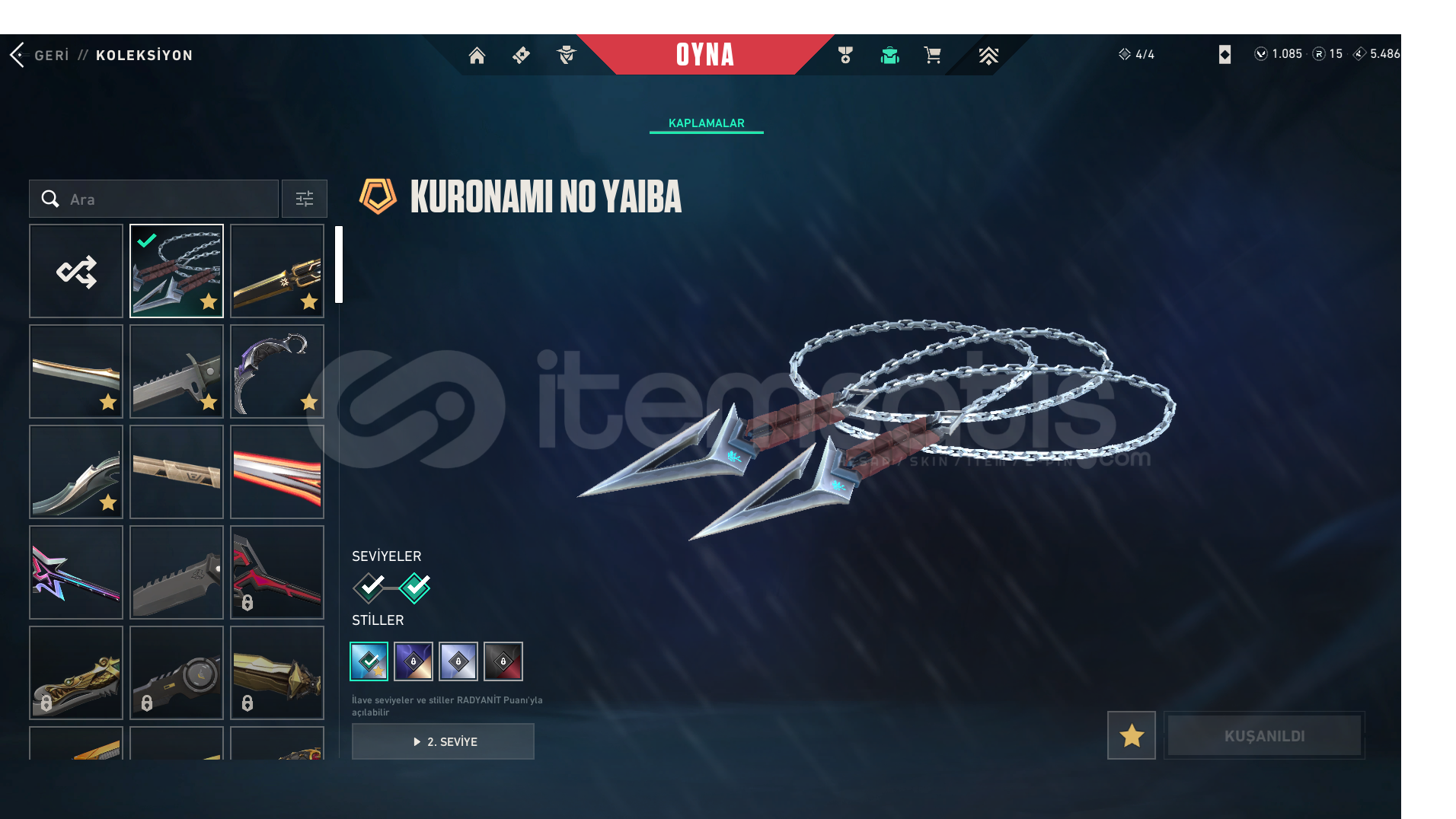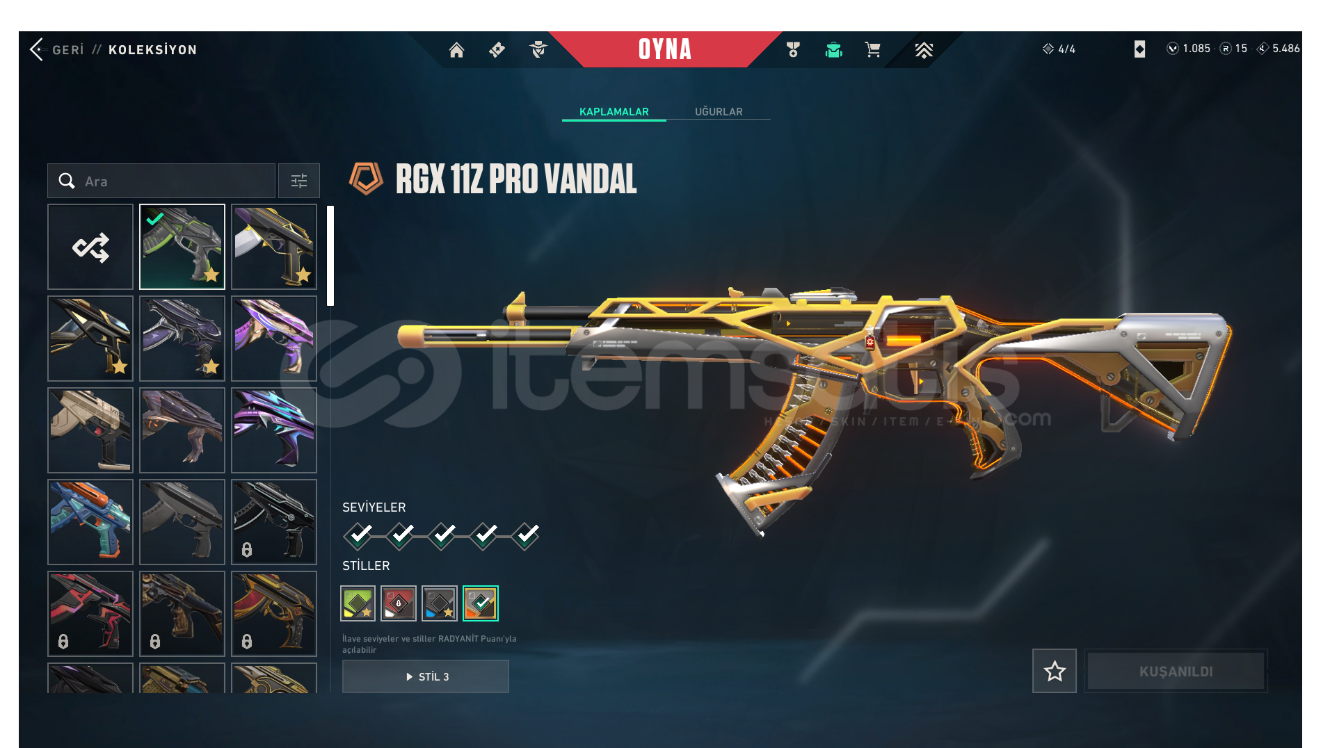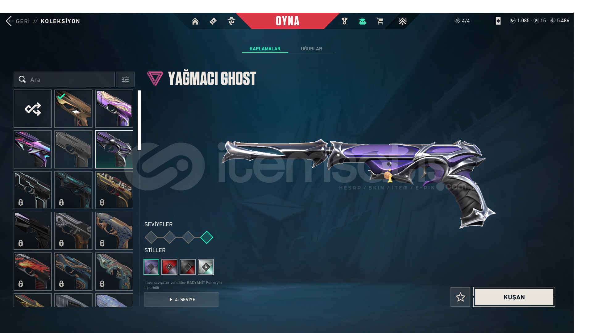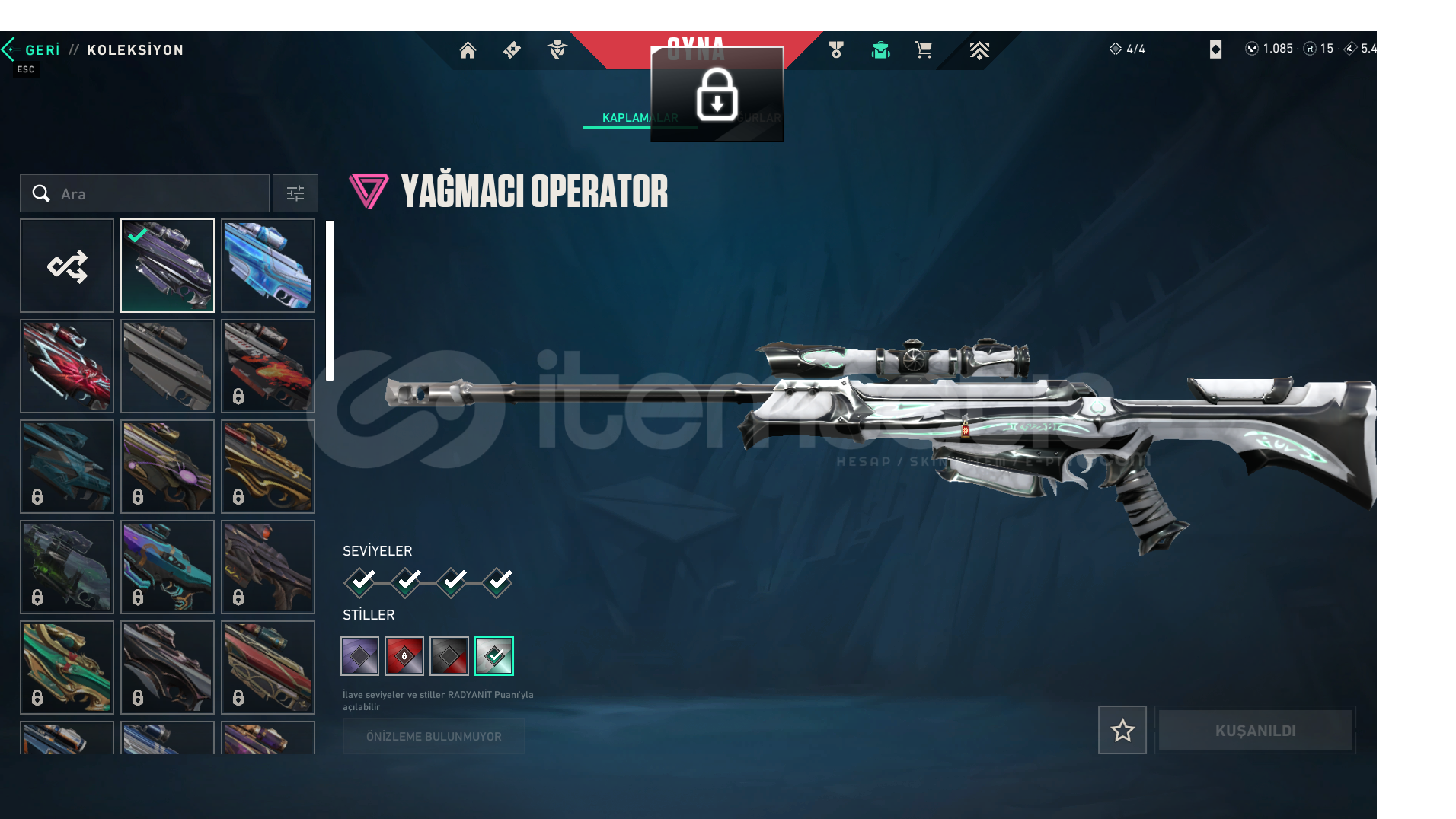 ASİL VANDALRGX VANDALEJDER ATEŞİ VANDALYAĞMACI VANDAL2025 CHAMPIONS VANDALSPLASH X VANDALŞİMŞEK PHANTOMYAĞMACI GHOSTULUPENÇE GHOSTYAĞMACI SHERİFKAOS SHERİFYAĞMACI OPERATORKURONOMI BICAKYAGMACI KARAMBIT2025 CHAMPIONS KELEBEKUZAY SERUVENI BICAGIYITIK HANCEREBEDİ FATİHbütün bu saydığım skinlerin levelleri fulldur bazı skinlerdede renk paketleri bulunmaktadır paraya ihtiyacım oldu...
