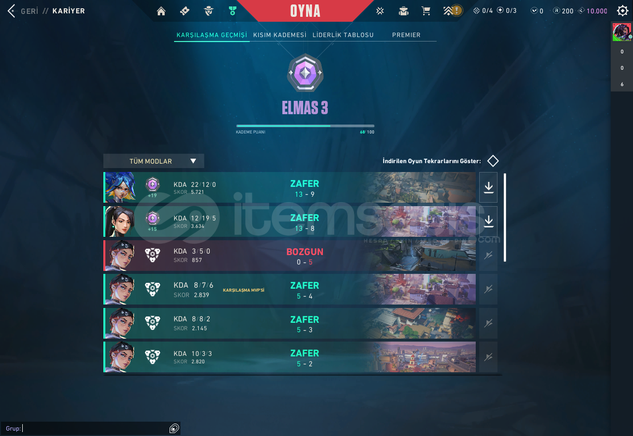 ELMAS 3 SKİNSİZ HESAP 38 SEVİYE MAİNLEMELİK