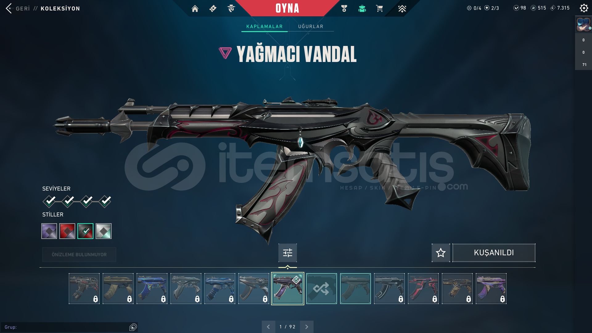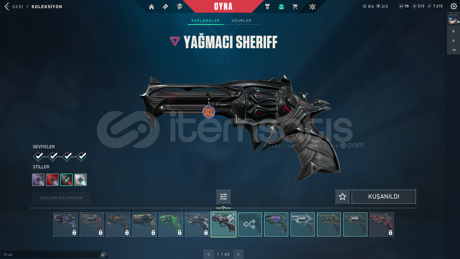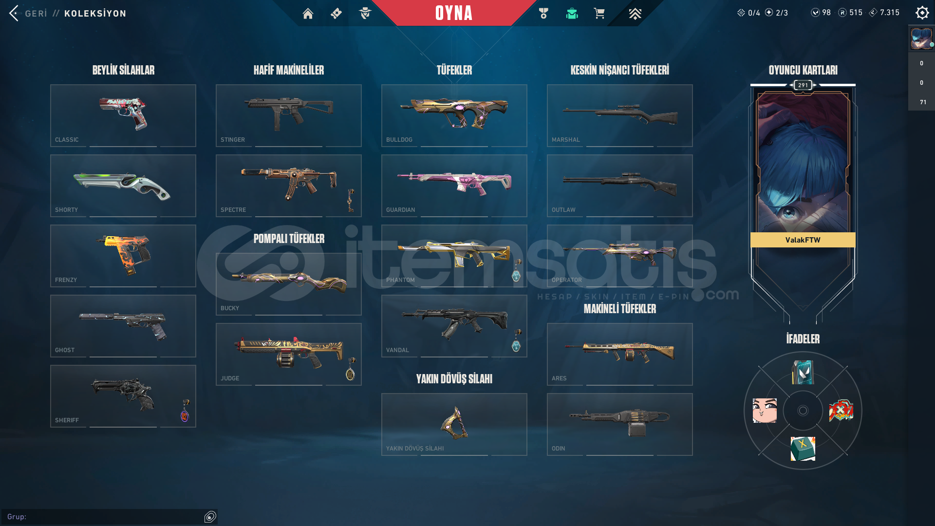 :HESAP İÇERİĞİ:ASİL PHANTOM:DELİLOP PHANTOM:YAĞMACI VANDAL:YAĞMACI ŞHERİFF:SİHİRPUNK SPECTRE:HESAP SEVİYESİ:291:HERŞEY TR:HERŞEYİNİ ÜSTÜNÜZE ALA BİLİRSİNİZ