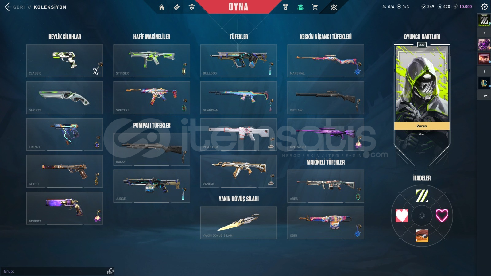 -Emek Hesabı-•Plat 1•230 Lvl•2 Battlepass•Yağmacı Vandal•Yitik Vandal•Anomali Kelebek•Spectrum Phantom•Seri Tetik Sheriff•Yıldız Belası Operatör •Sihirpunk Ghost•Zeta Classic•Hepsi Max•Tüm Renkler Açık