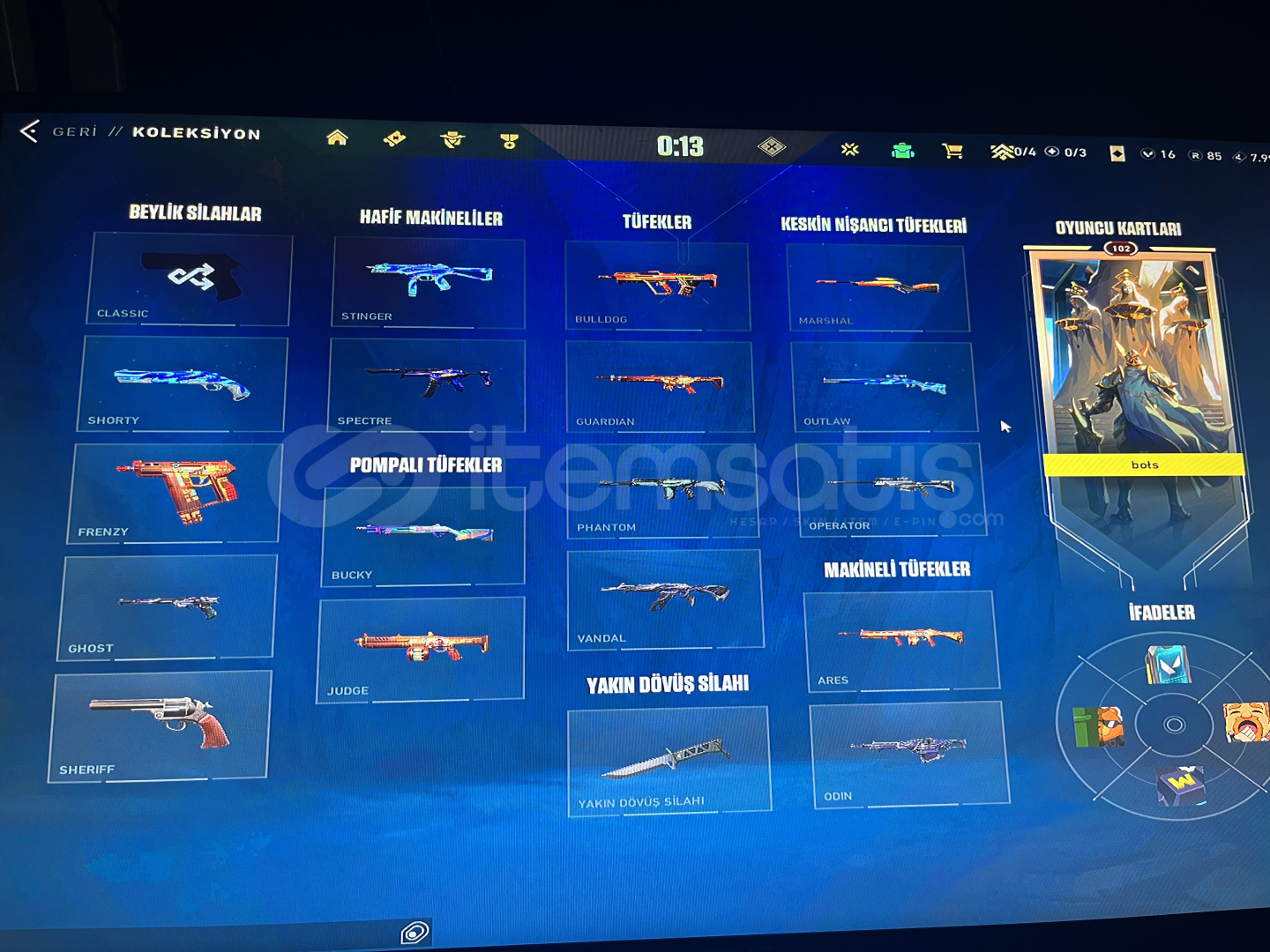 MAİL DEĞİŞİMİ YAPILACAKTIR.TÜM AJANLAR AÇIKTIR.SHERİFF-2 Battlepass sheriff-Neo Frontier SheriffGHOST-Fatih GhostVANDAL-Champions 2023 Vandal-Felaketin Kalbi Vandal-Ağaç vandalPHANTOM-Yağmacı PhantomOPERATOR-Yağmacı OperatorBIÇAK-Uzaylı Avcısı Bıçak-2 Adet Battlepass BıçakODIN6-Yağmacı odinHesap 102 seviyedir.Tamamen ihtiyaçtan satıyorum tamamıyl...