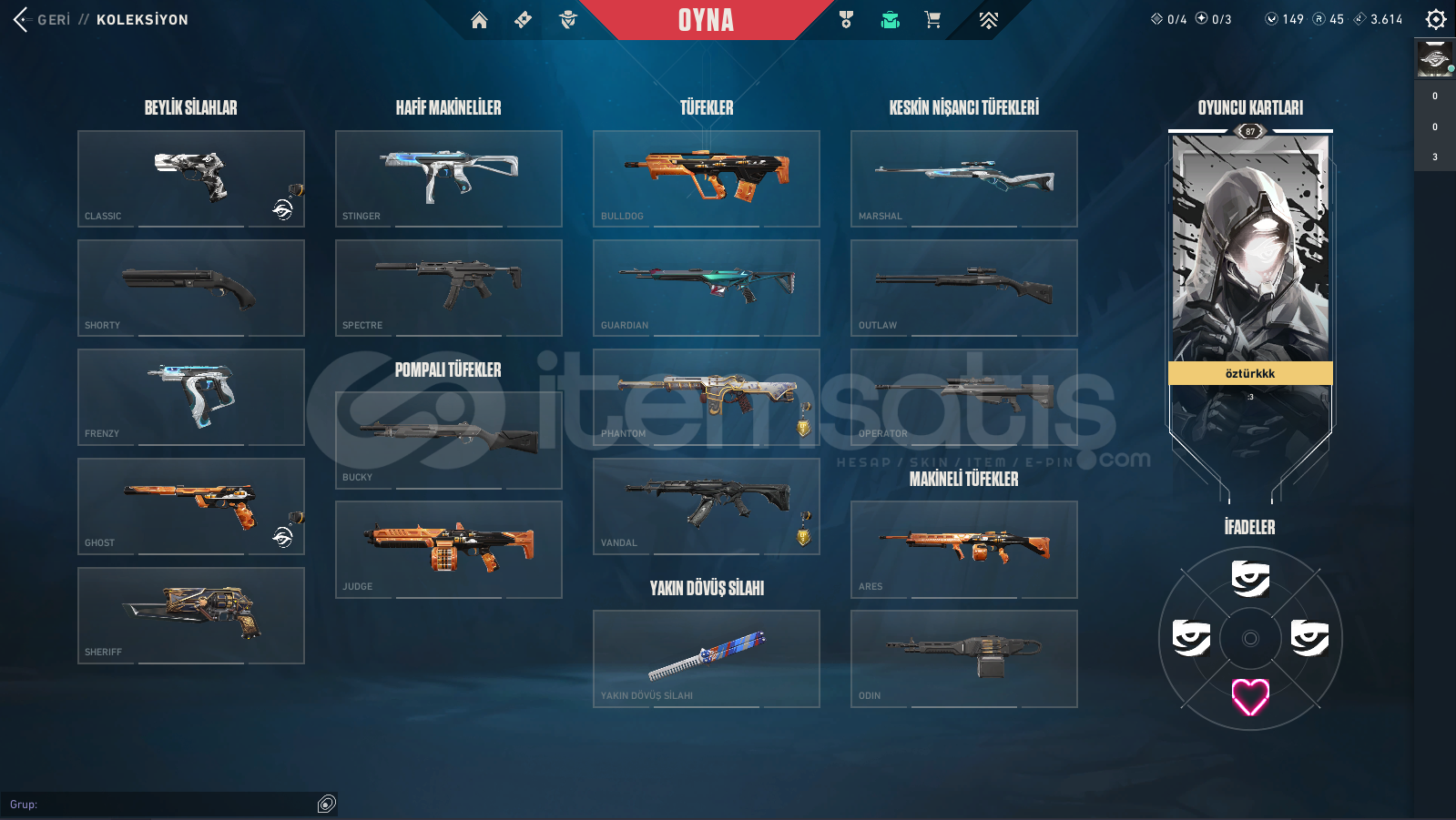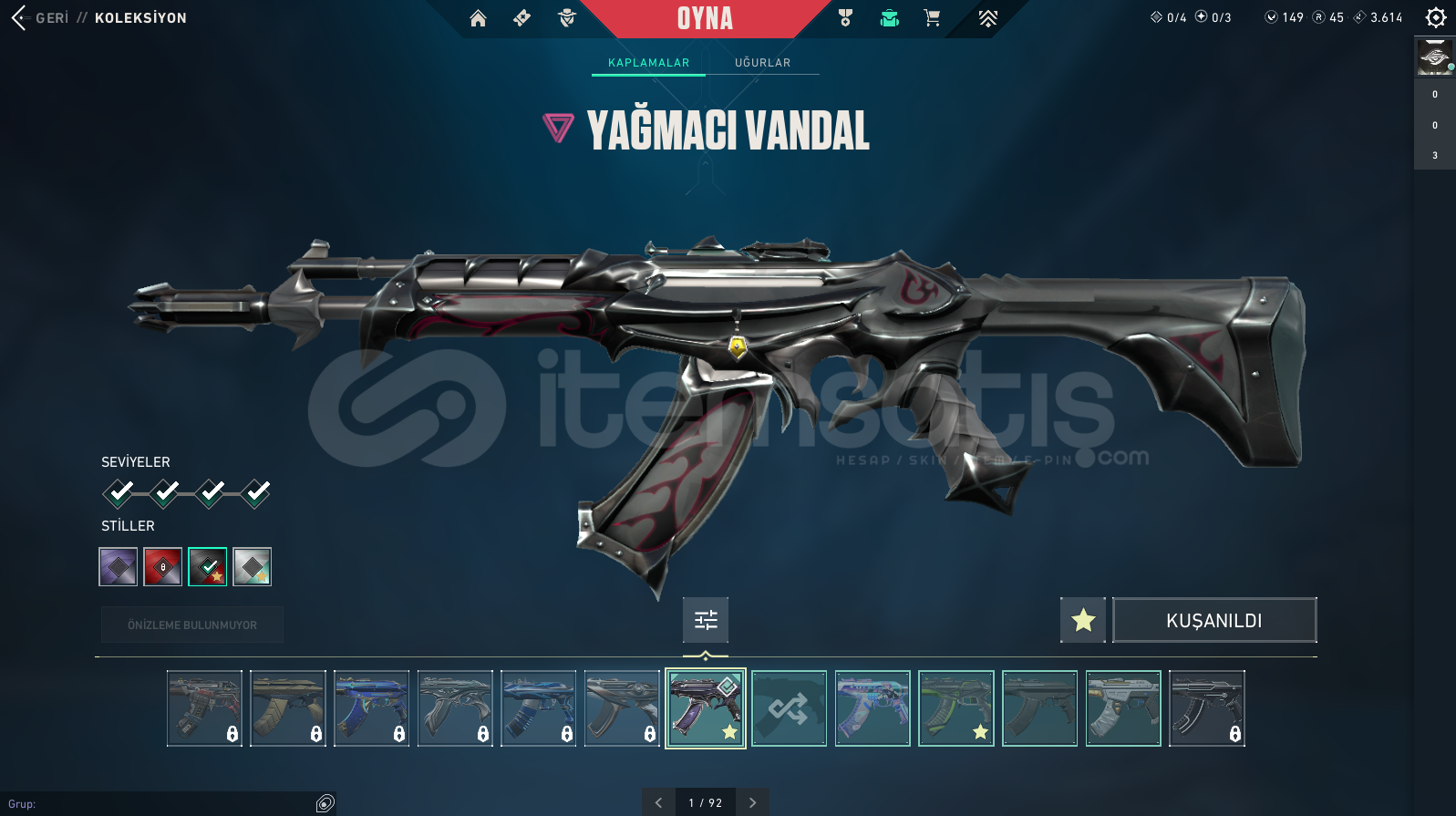 İÇİNDE SKİNLER;aemondir sheriffyağmacı vandalrgx vandaloni phantomasil guardianvct25 x ts classıcderin sular sheriffyoru nun janti kelebek tarağıufkun sınırı vandal1 savaş bileti