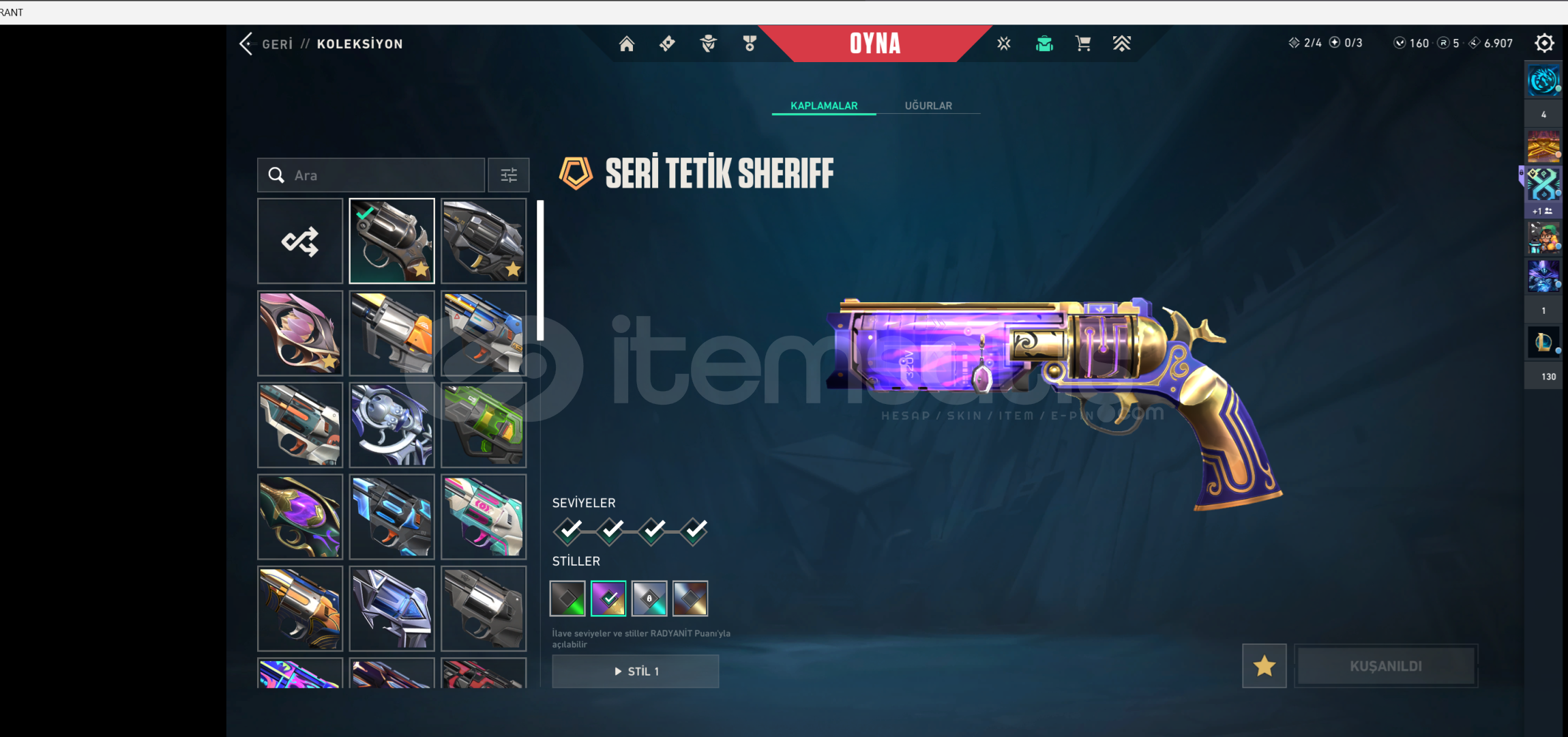 ve tekrar dediğim gibi oyuna bir daha gelmiyecek çok fazla skine sahip bir hesaptır.