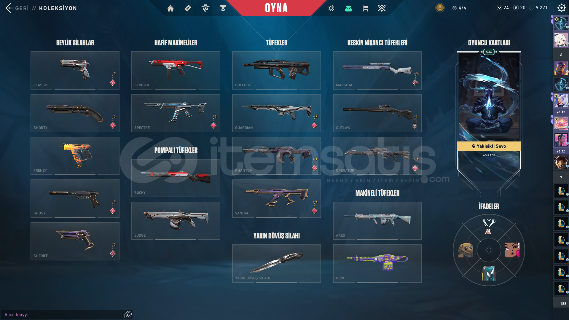 Bıçak: kuronami, arcane eldivenleri, evrim, faz koruyucu, mahvolmuş kralın kılıcı, onimaru kunitsuna, özel harekat kelebek,ruyi sopası, seri balta,vct2025 karambit, vct lock in, yağmacı bıçak